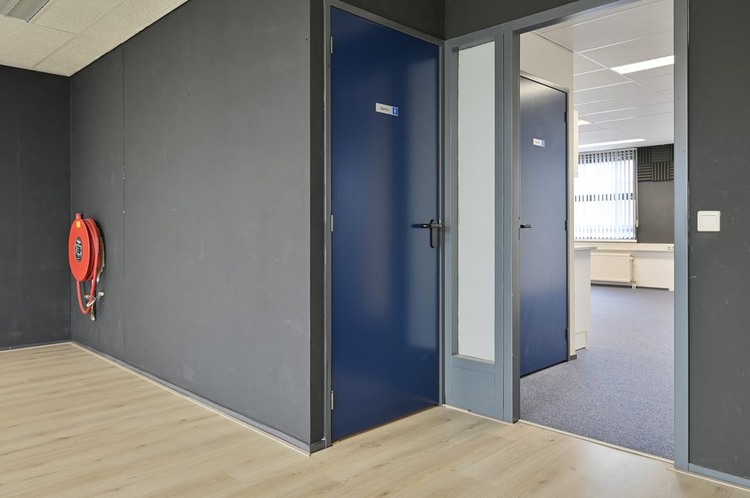 Via een toegangsdeur is de kantoor-/werkkamer bereikbaar welke aan de achterzijde is gelegen en is voorzien van een kitchenette.