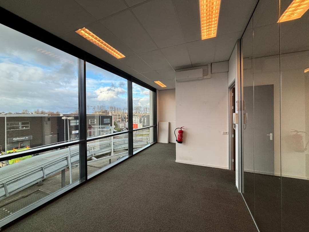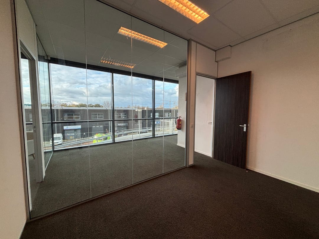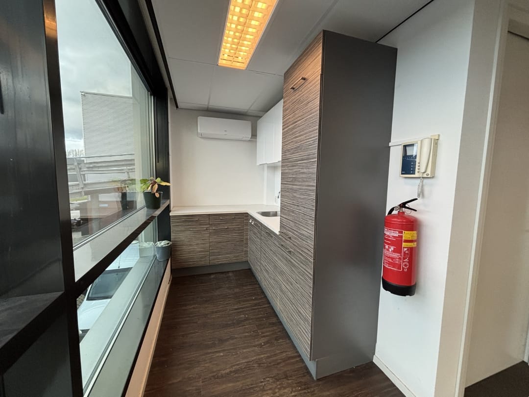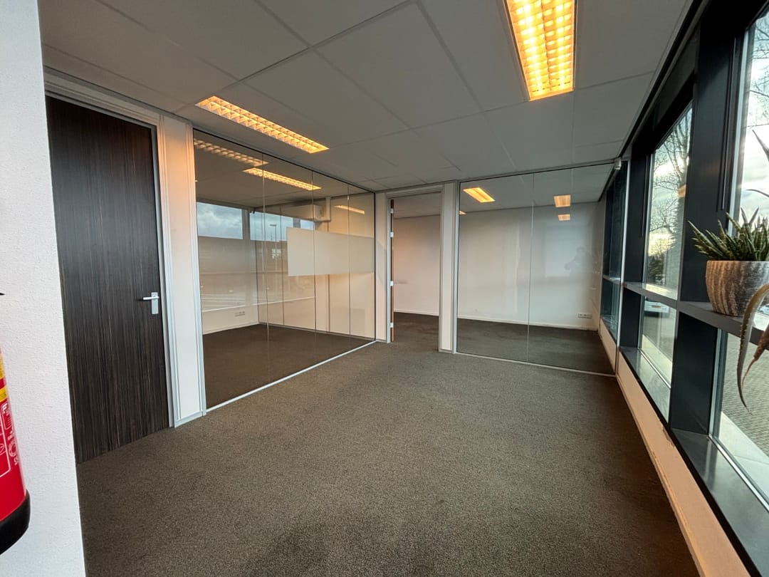 De kantoorruimtes zijn voorzien van een inbouwpakket met glazen wanden, pantry met inbouwapparatuur en verwarming en koeling middels airco units.
