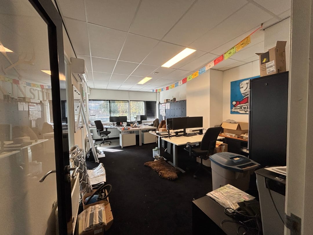 De bedrijfsruimte bestaat uit een hoog gedeelte met een vrije hoogte van circa 7,5 meter, en een lager gedeelte. Op de verdieping, bereikbaar via één van de twee trappen, bevinden zich de kantoorruimte, kantine en een ruime entresol, die momenteel in gebruik is als showroomruimte.