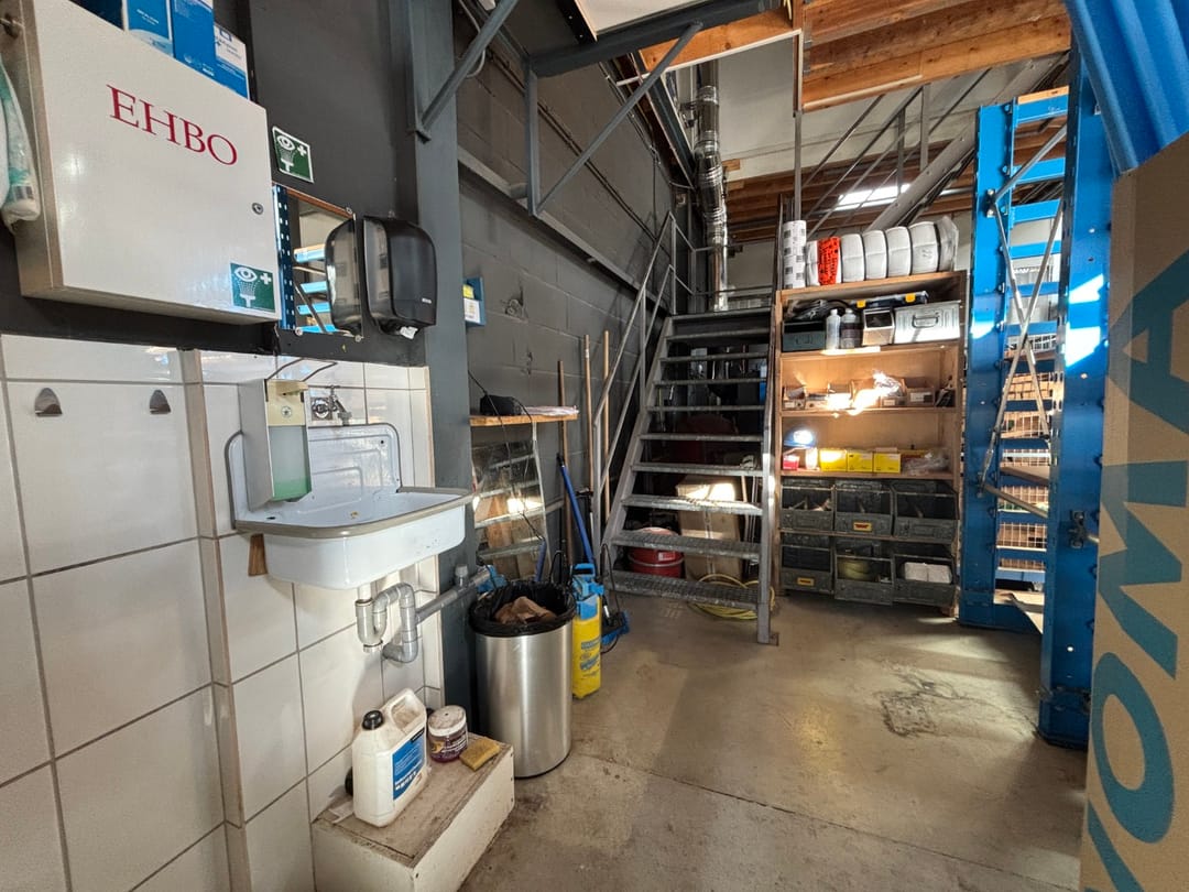 De entree tot de bedrijfsruimte bevindt zich aan de voorzijde en is toegankelijk via een royale overheaddeur of een separate loopdeur. De hal bestaat uit een hoog gedeelte met een vrije hoogte van circa 7,5 meter en een lager gedeelte, wat de ruimte uitermate geschikt maakt voor uiteenlopende bedrijfsactiviteiten zoals opslag, productie of distributie. Via één van de twee trappen bereikt u de verdieping, waar zich de kantoorruimte, kantine en entresol bevinden.