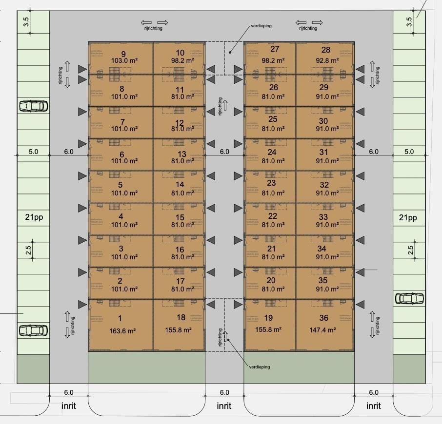 - Het project bestaat in totaal uit 36 hoogwaardige bedrijfsunits