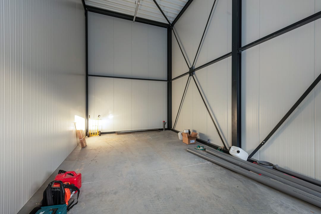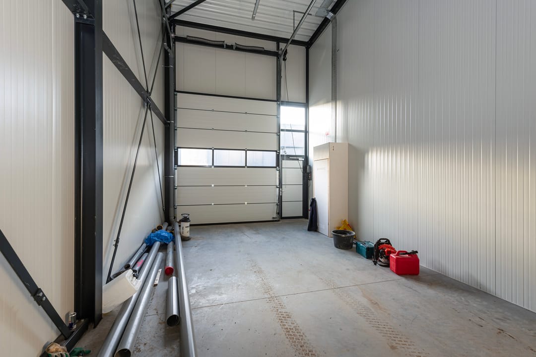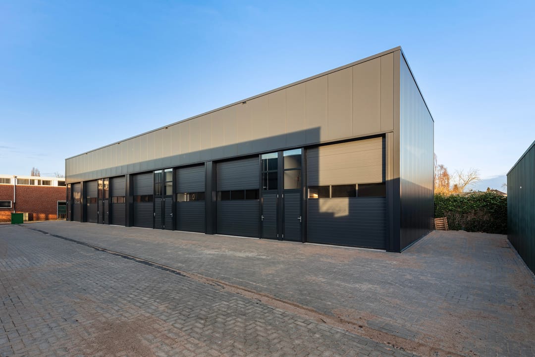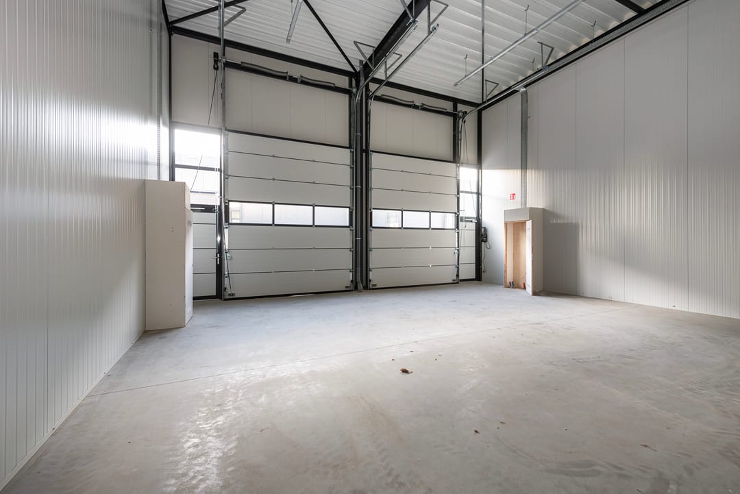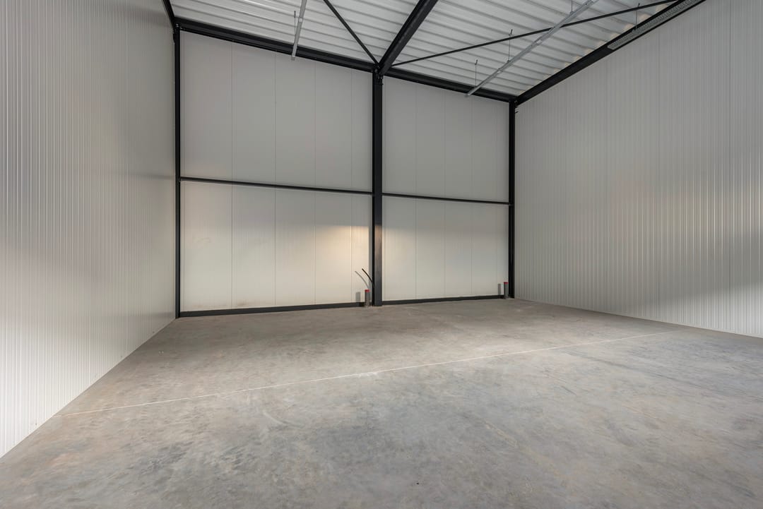 Elke unit is volledig voorbereid op direct gebruik. Zo beschikt iedere unit over een eigen toilet en wasbak, een elektrische heater voor een aangenaam werkklimaat, een praktische overheaddeur voor gemakkelijke toegang met voertuigen en goederen, én een separate loopdeur voor dagelijks gebruik.