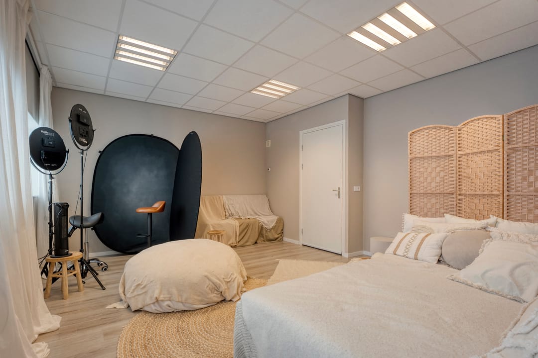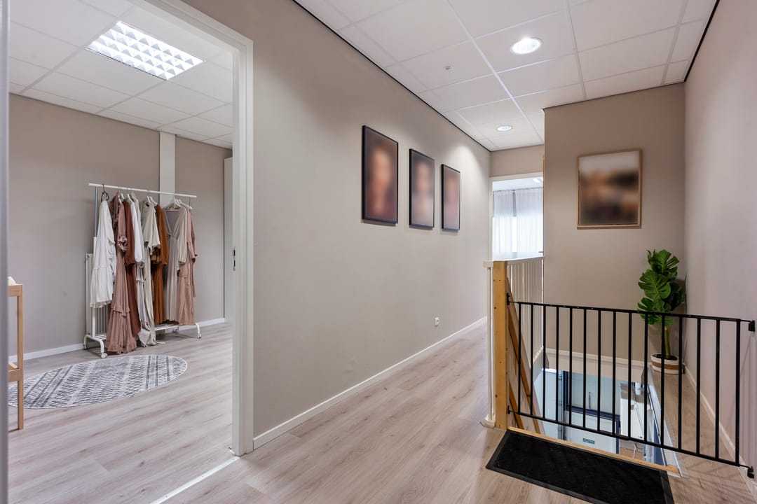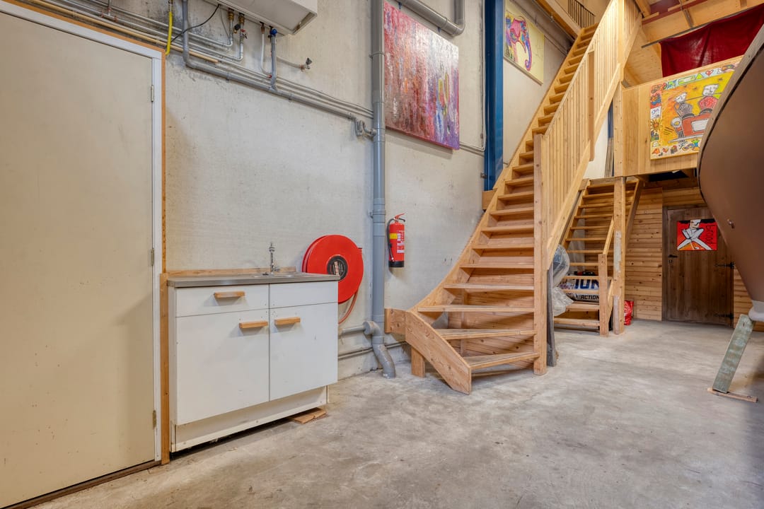 De bedrijfsunit beschikt op de begane grond over een opslag-/werkruimte en een aparte werkplaats. De tussenverdieping, welke zich bevindt boven de werkplaats is met een vaste trap te bereiken, en zeer geschikt voor opslagdoeleinden. Op de tweede verdieping tref je een fraaie kantine aan, een toiletruimte en twee zeer nette kantoorruimtes, welke nu in gebruik zijn als fotostudio.