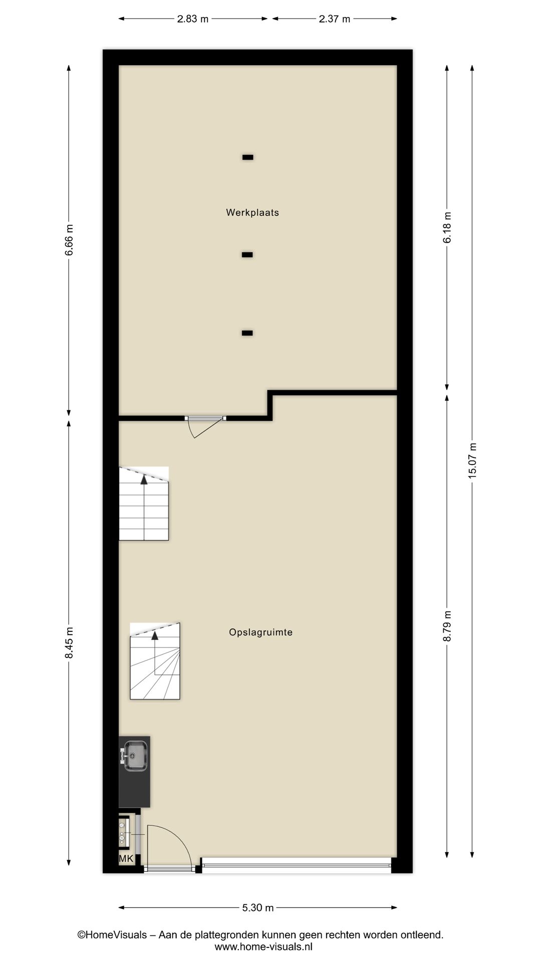 - Tussenverdieping (ca. 42 m²): opslagruimte.