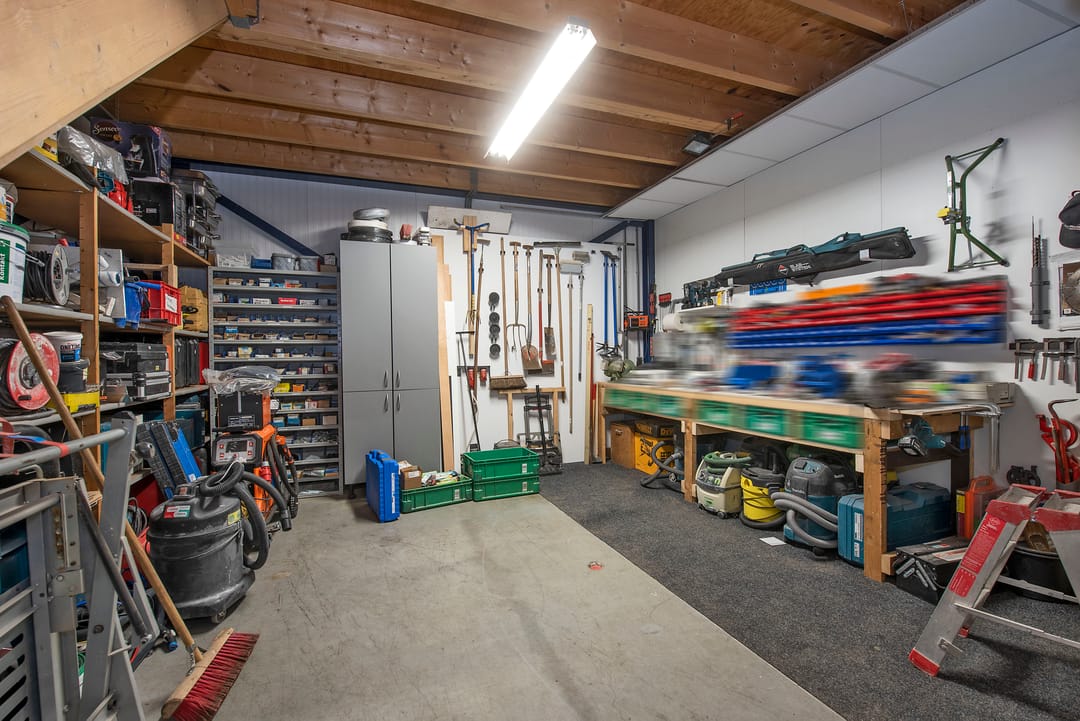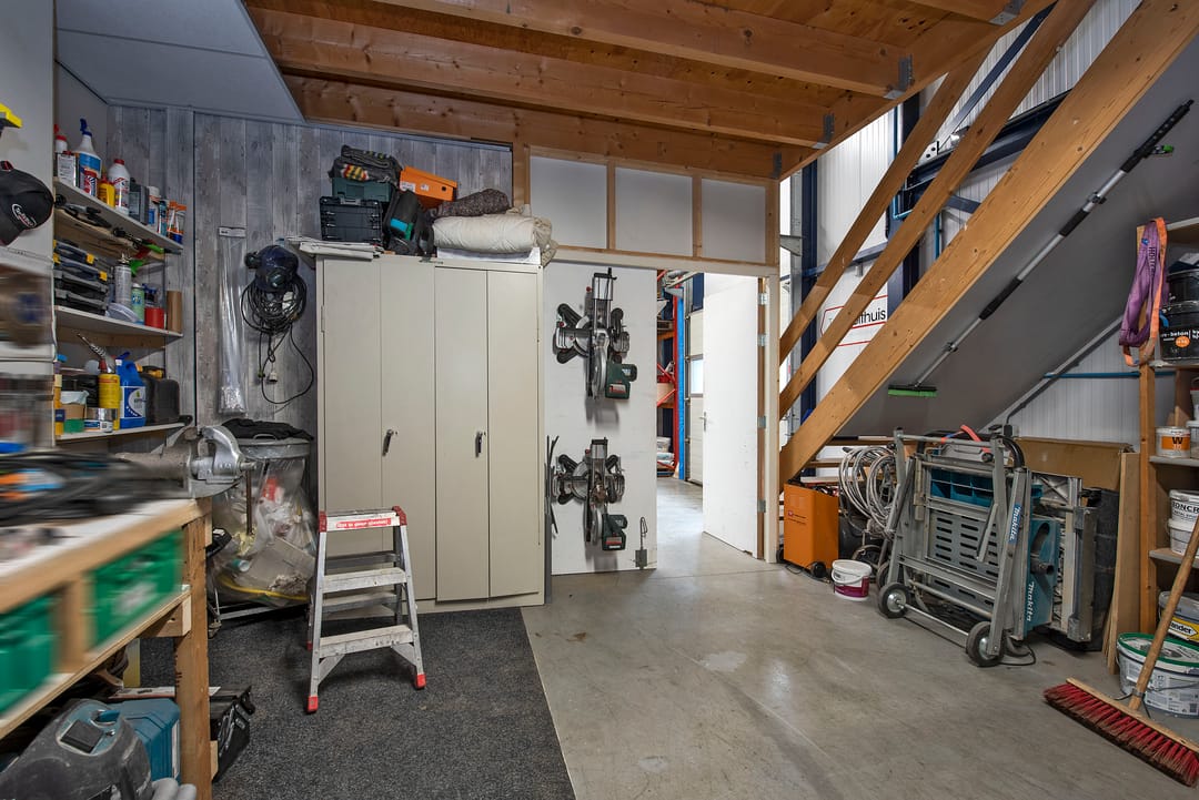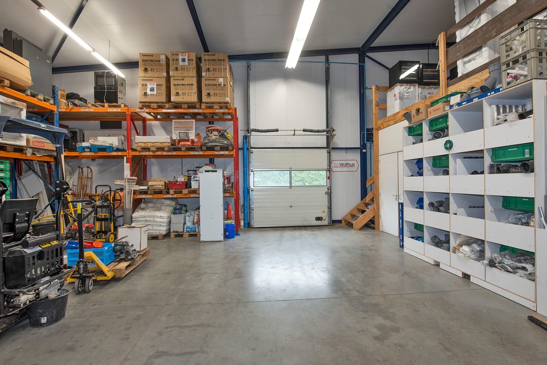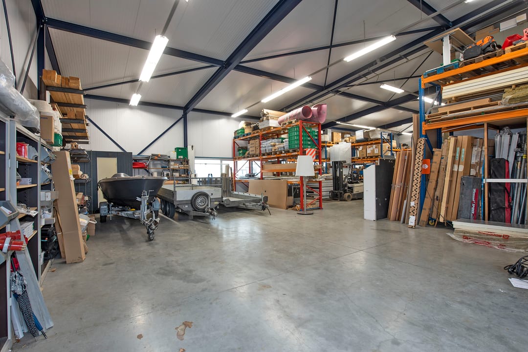 - Overheaddeuren, krachtstroom, betonvloer, toilet, pantry en inbouwarmaturen