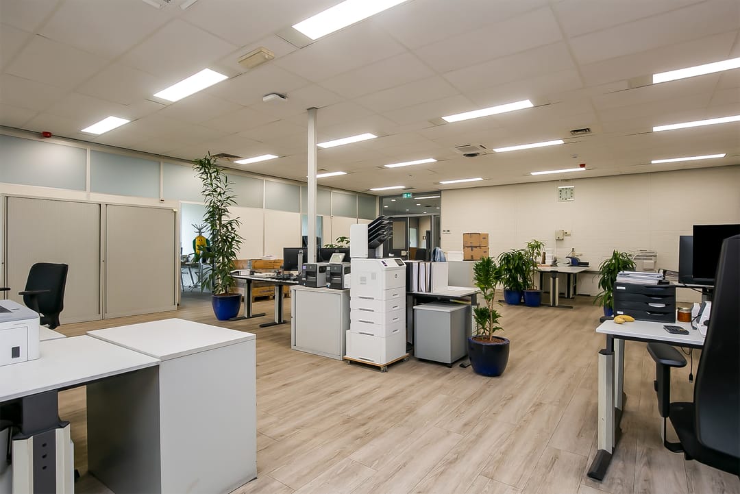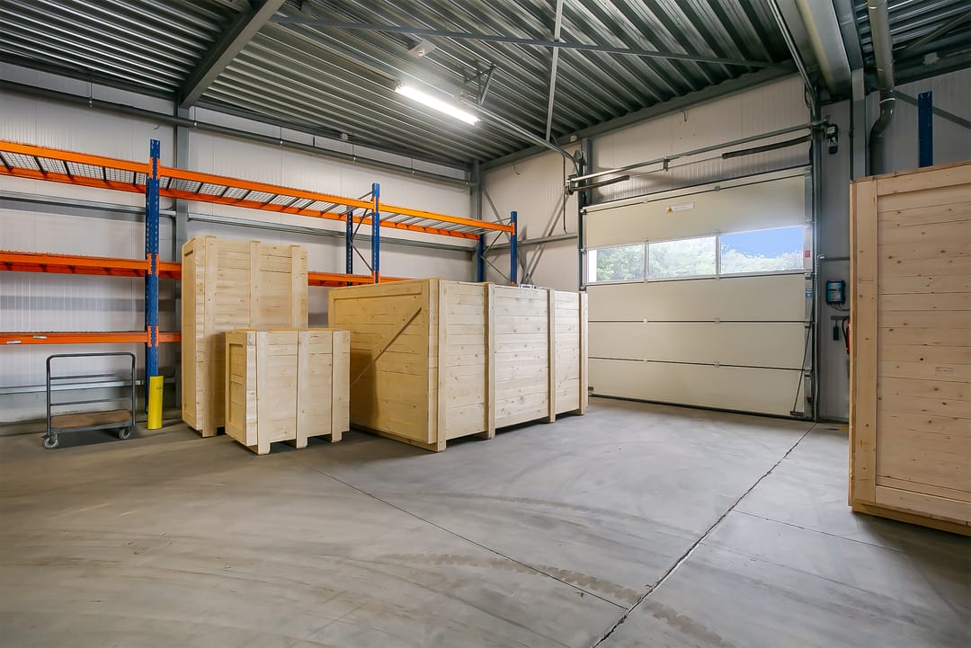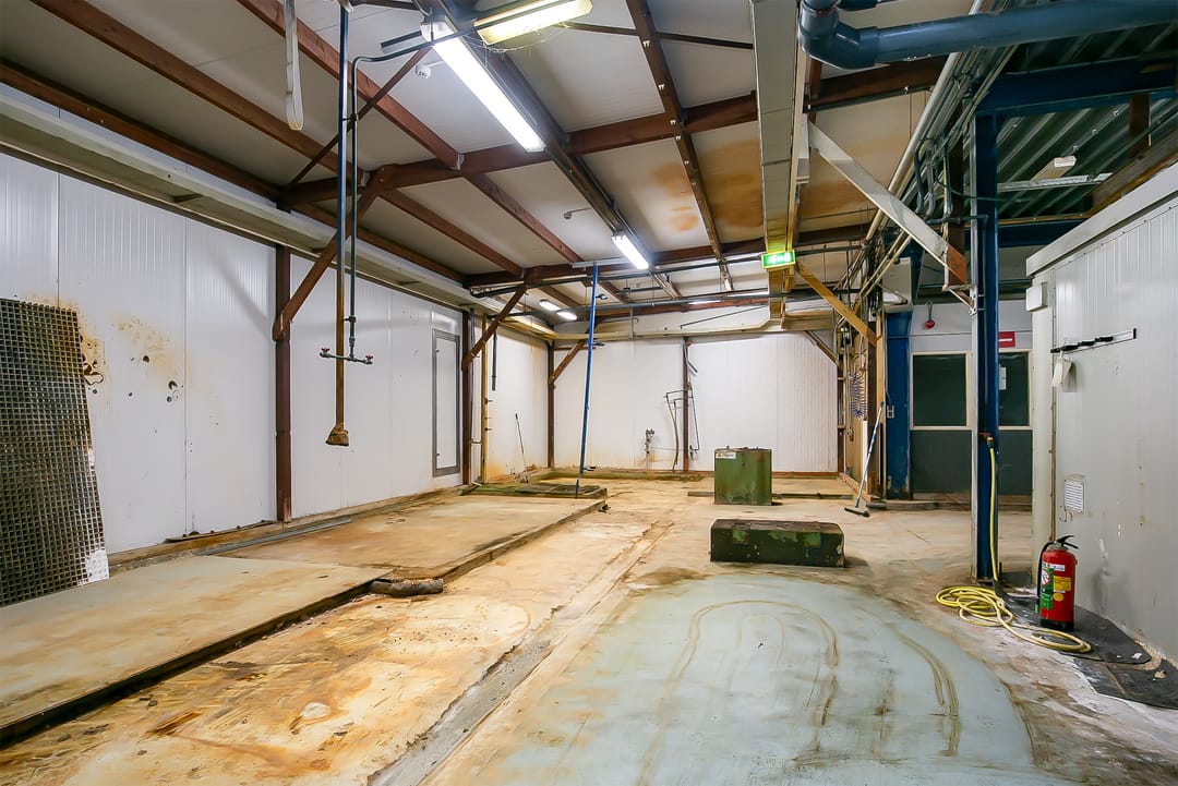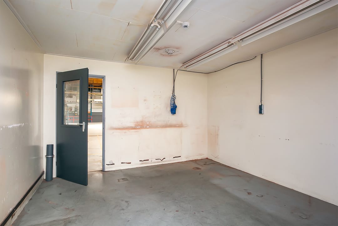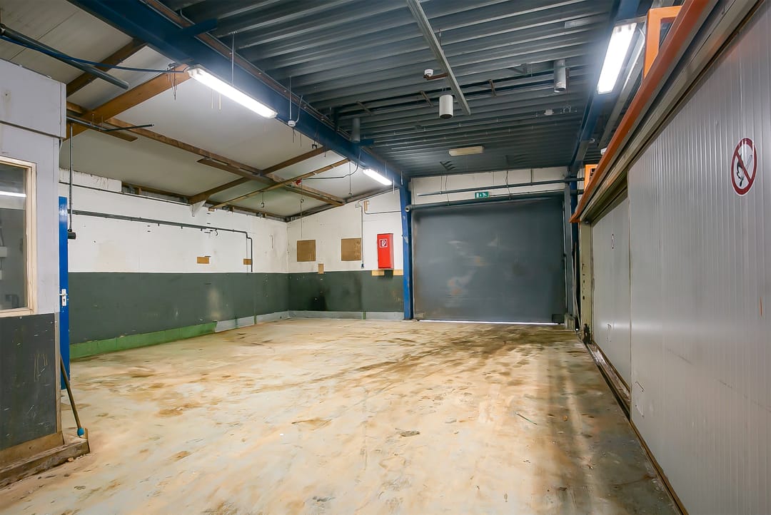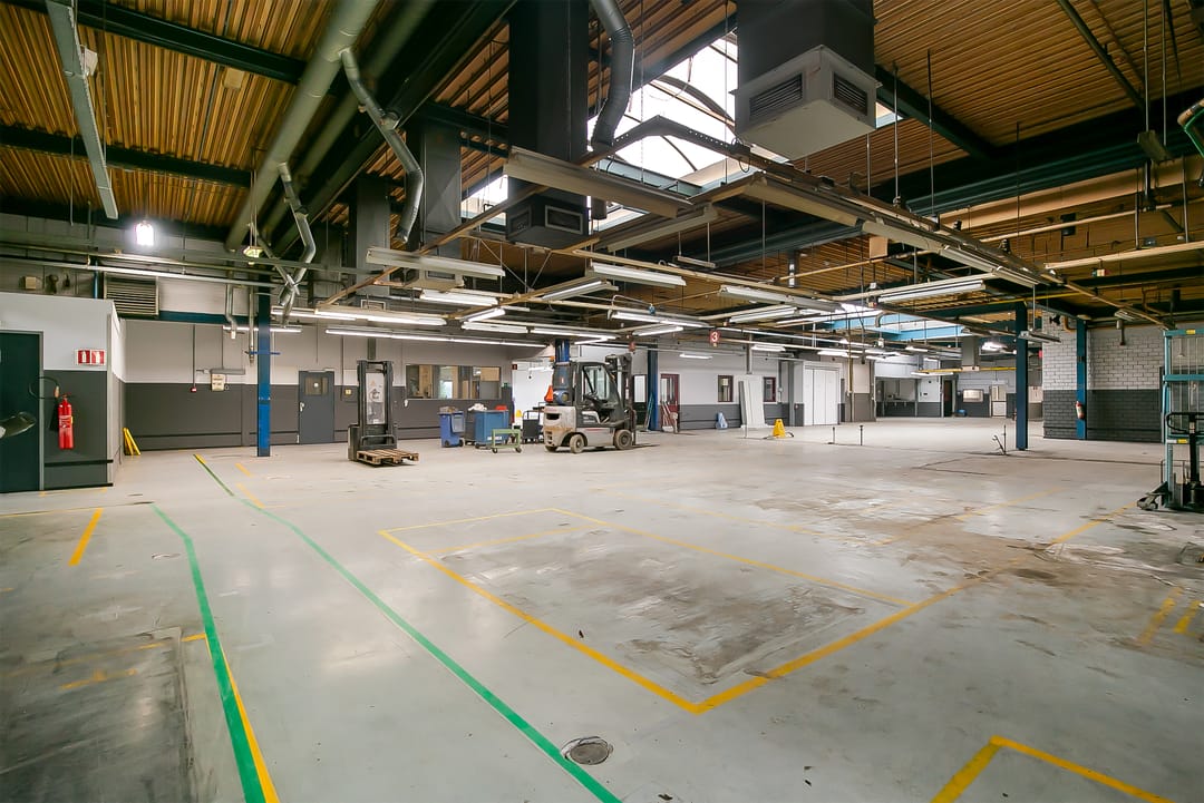 - Lichtstraten, overheaddeuren, krachtstroom, betonvloer, heater, toilet, pantry en inbouwarmaturen