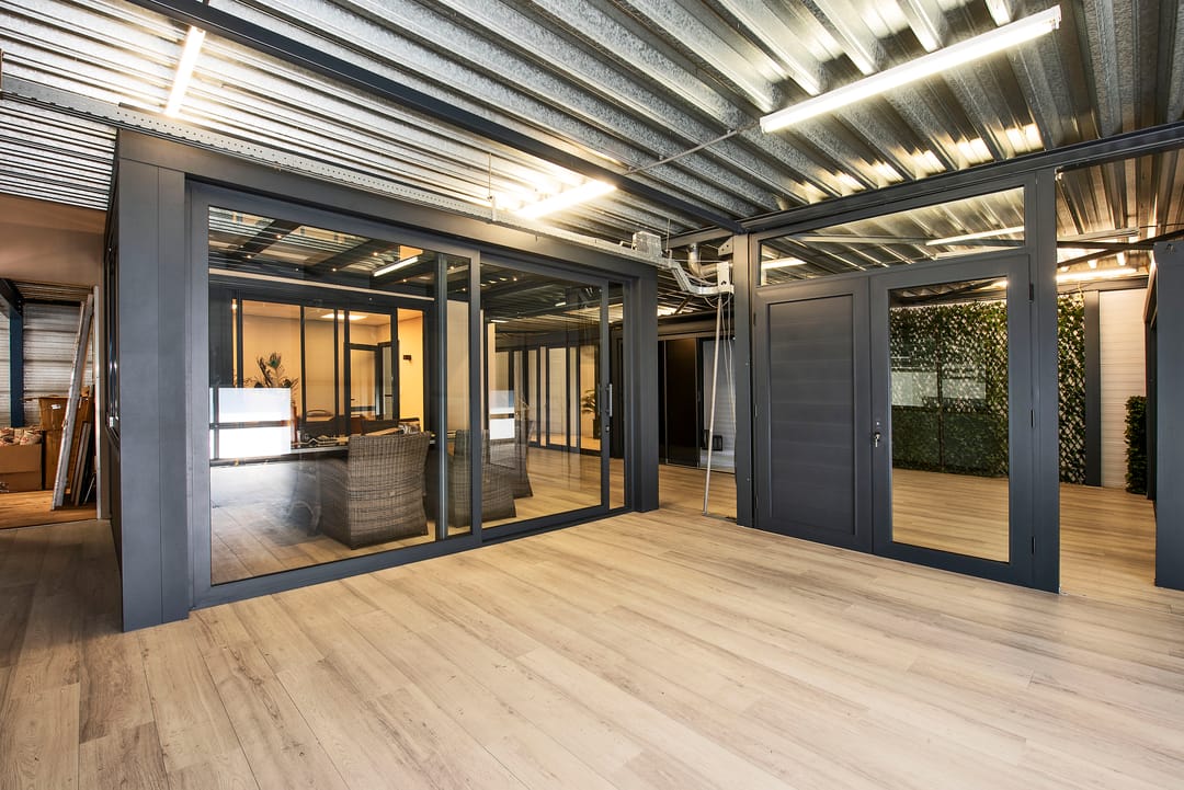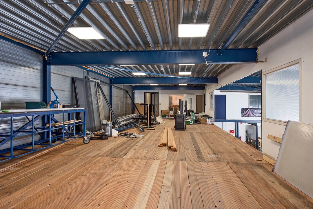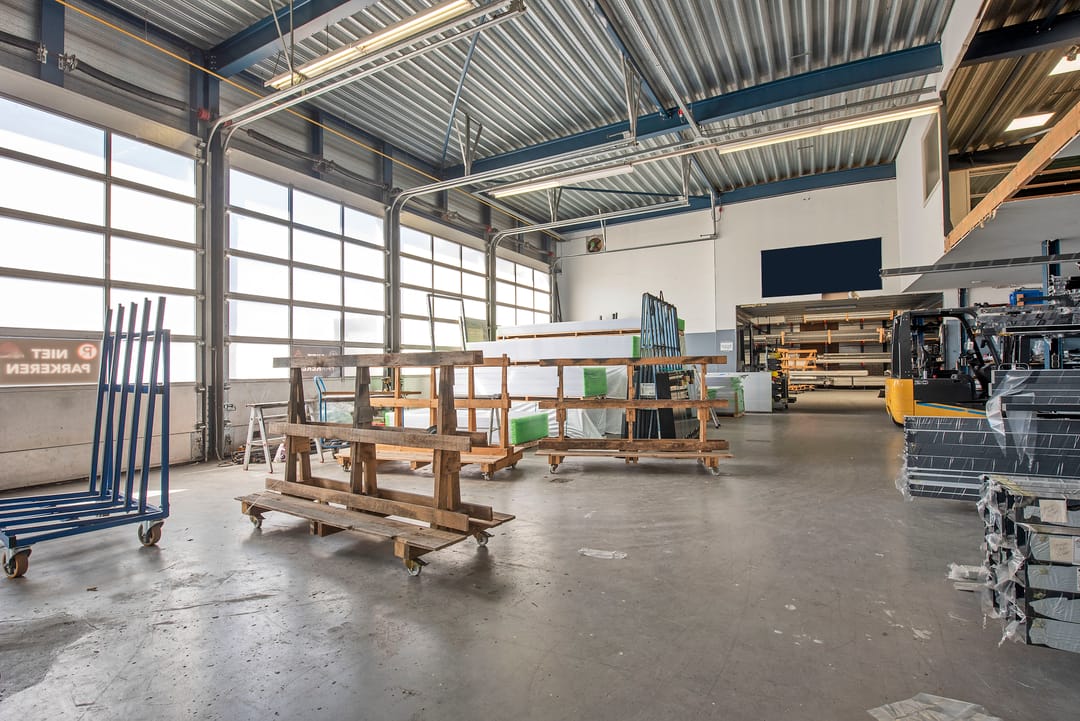 - Lichtstraten, overheaddeuren, krachtstroom, betonvloer en heater