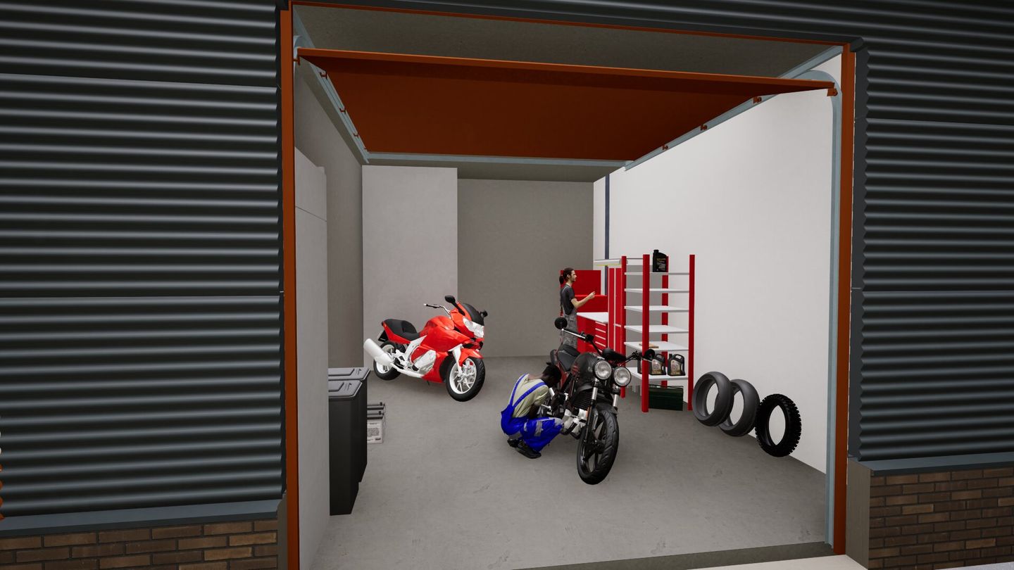 - De opslagunits op de begane grond worden v.v. een elektrische overheaddeur met loopdeur en een toilet;