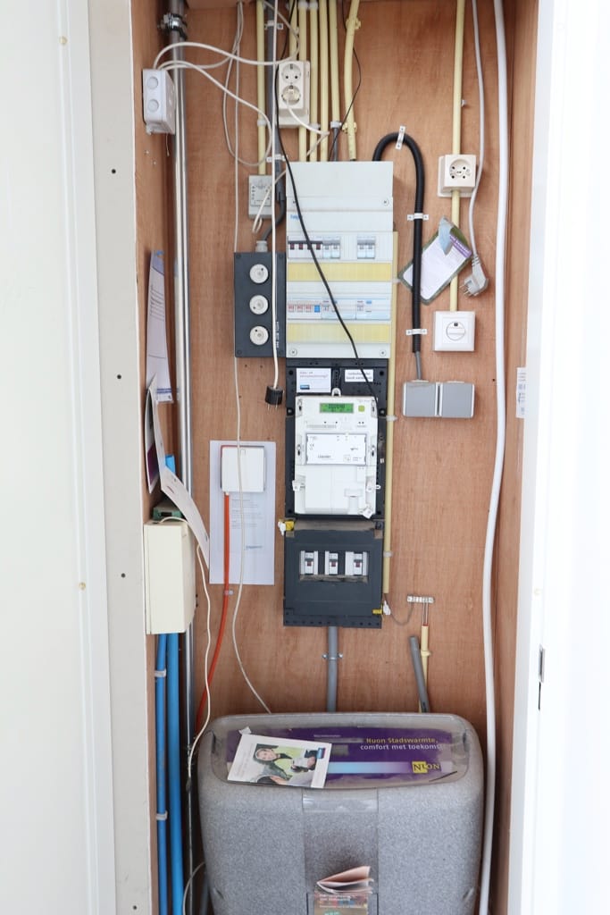 - Meterkast uitgerust met 3 krachtstroomgroepen en 2 16A groepen