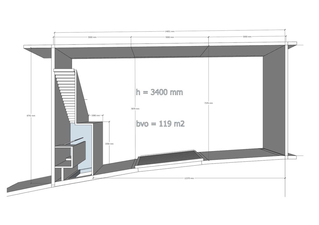 - Een frontbreedte van bijna 15 meter met de mogelijkheid tot een 2e sectionaaldeur