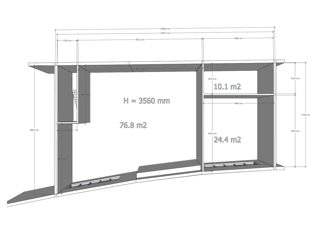 - Plafond aparte ruimte uitgevoerd met een systeemplafond met inbouwarmaturen