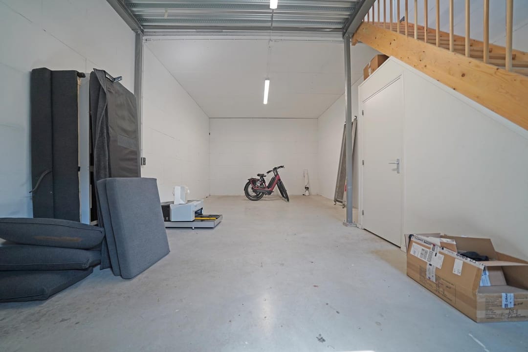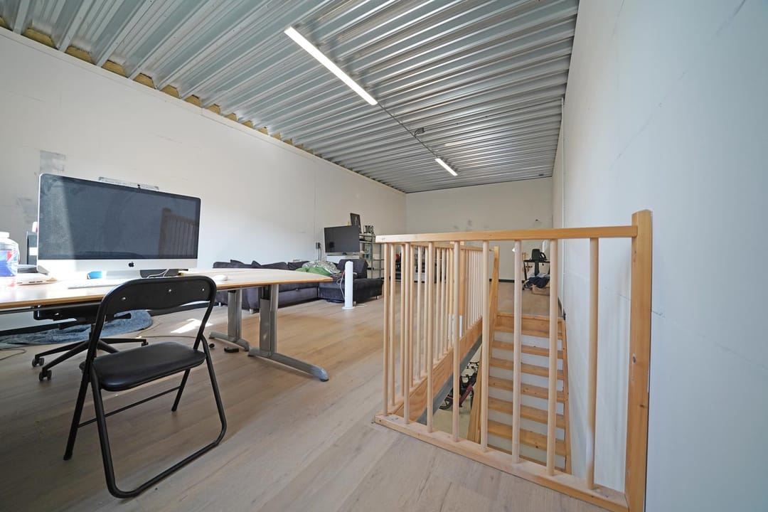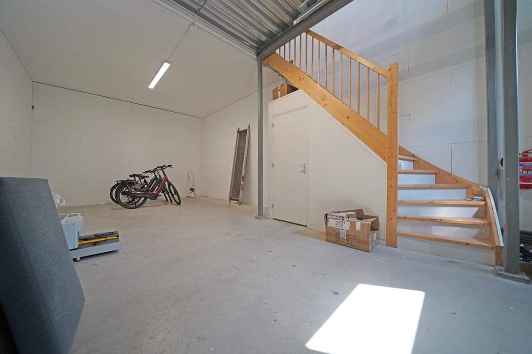 - Verdiepingsvloer is bereikbaar via een houten trap met houten leuning;
