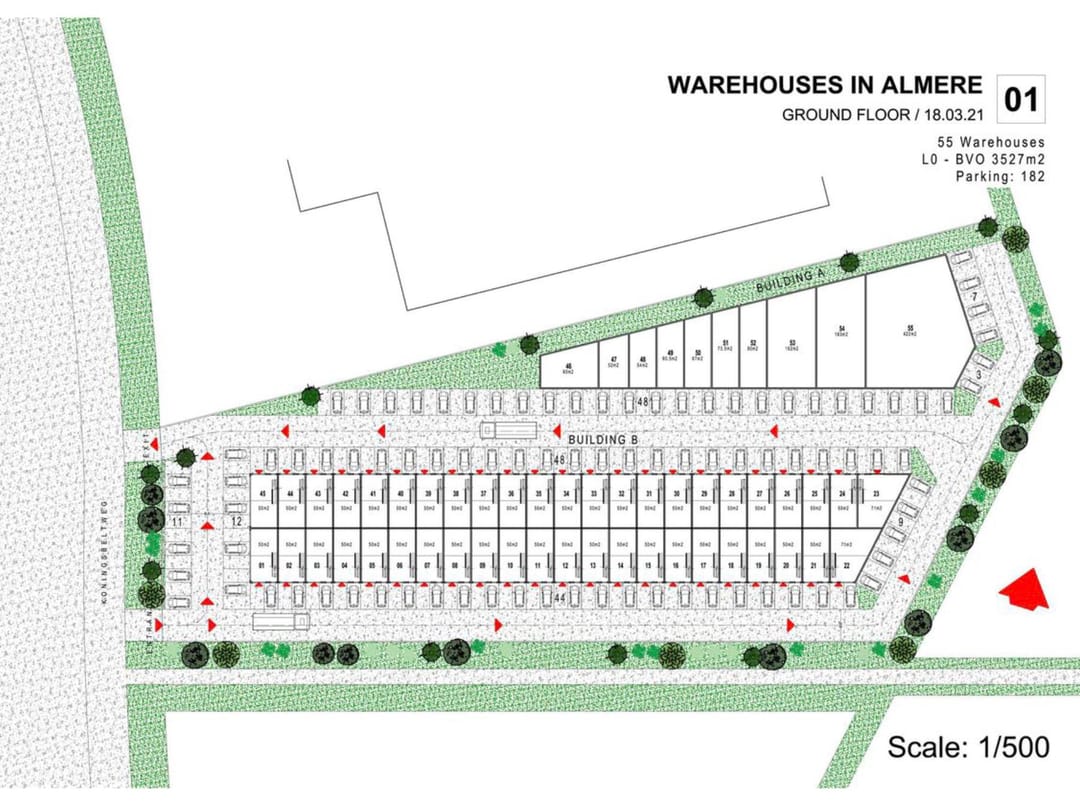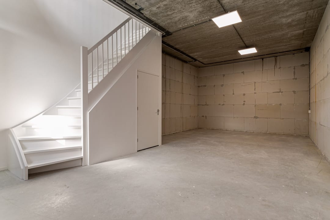 - Overheaddeuren, betonvloer, toilet, pantry en te openen ramen