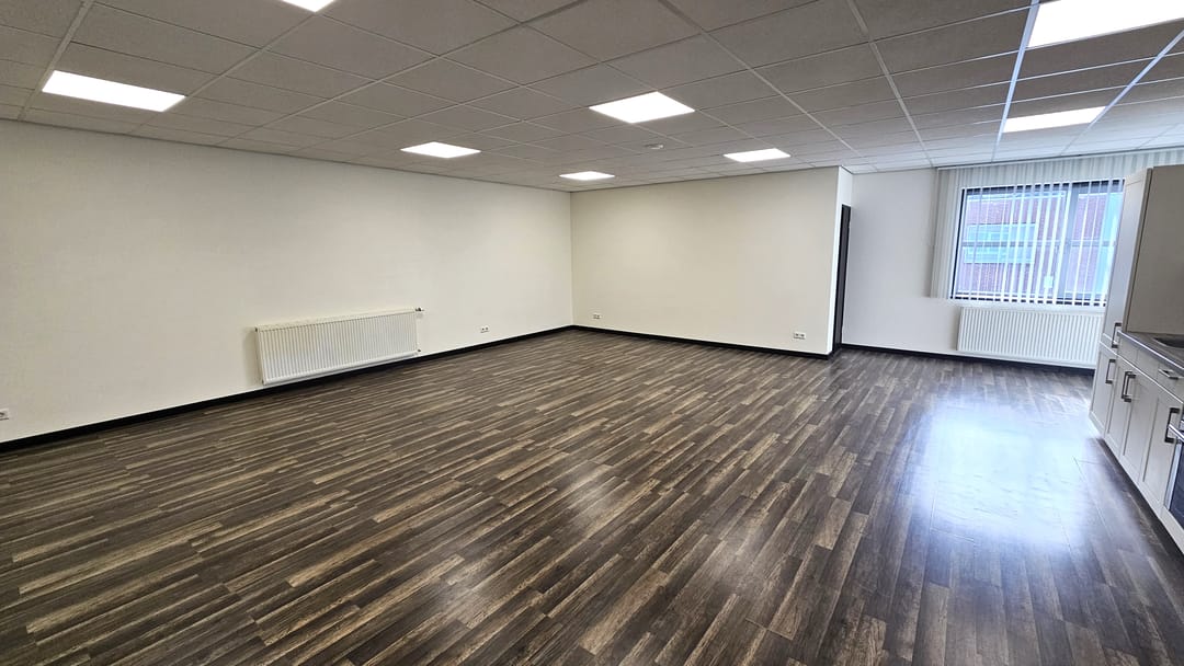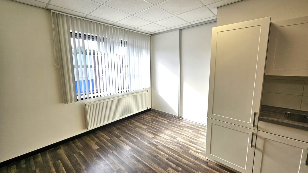 - Stijlvol kantoor op de verdieping voorzien van afgewerkte wanden, stopcontacten, plafondafwerking etc.;