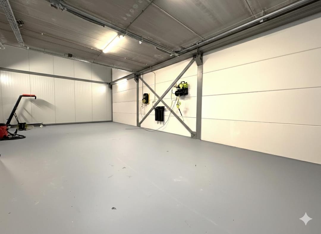 - Muur met deur tussen entree kantoorruimte en werkplaats.