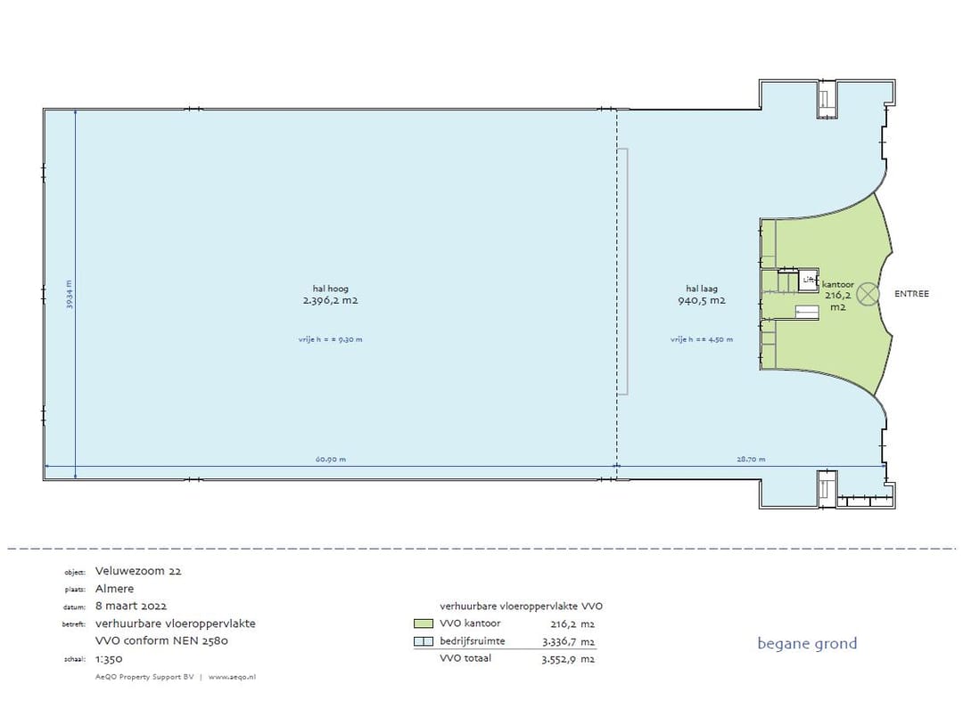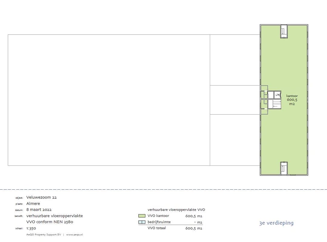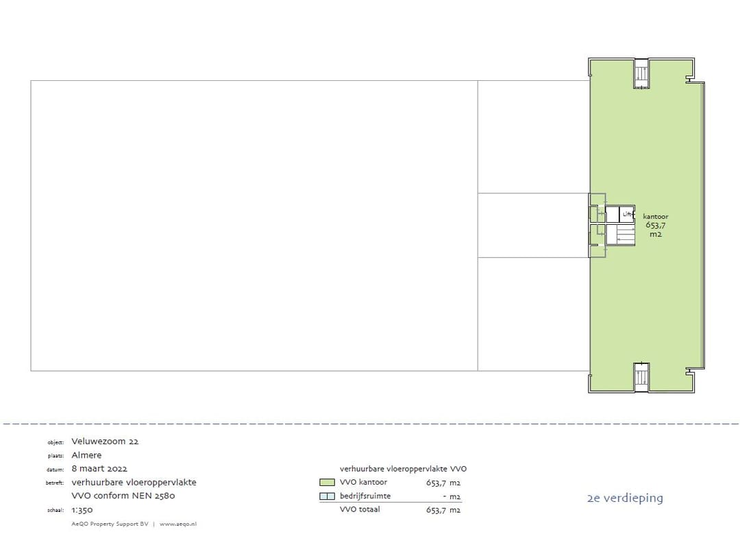 Het gebouw is gelegen aan de Veluwezoom 22 te Almere op eigen omheind terrein. Het omvat in totaal 5.797 m², waarvan 3.337 m² warehouse, 256 m² mezzanine en 2.164 m² kantoorruimte. Er is een ruim buitenterrein aanwezig met plek voor ca. 122 parkeerplaatsen voor auto’s. Het object heeft 1 overheaddeur en een vrije hoogte van ca. 9,30 m. Er worden twee loading docks gecreëerd, waardoor er 1 overheaddeur overblijft. Ook is het mogelijk om op het buitenterrein het warehouse aan de achterzijde uit te breiden met ca. 1.080 m².