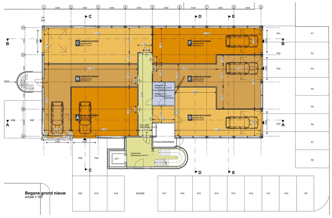 Unit E begane grond (ca 67m2 BVO) €980,- ex btw per maand