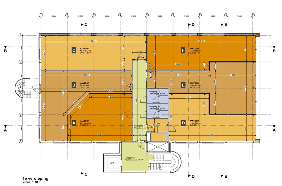 Unit E 1e verdieping (ca 70m2 BVO) €1.150,- ex btw per maand