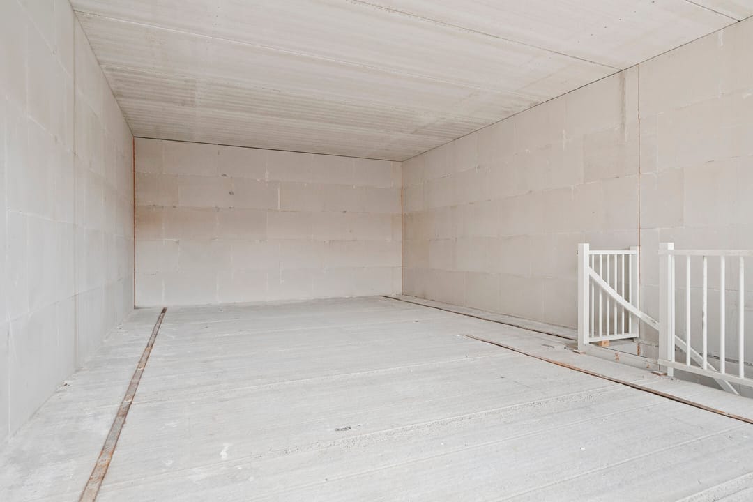 - Geïsoleerde betonvloer met een monolithische afwerking op begane grond.