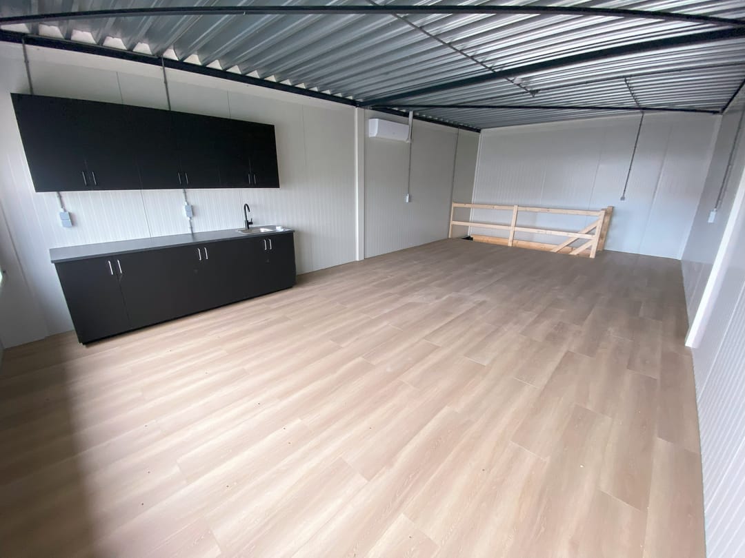 - Airconditioning, overheaddeuren, krachtstroom, toilet, pantry en te openen ramen