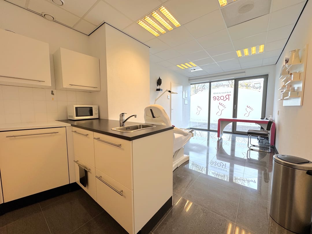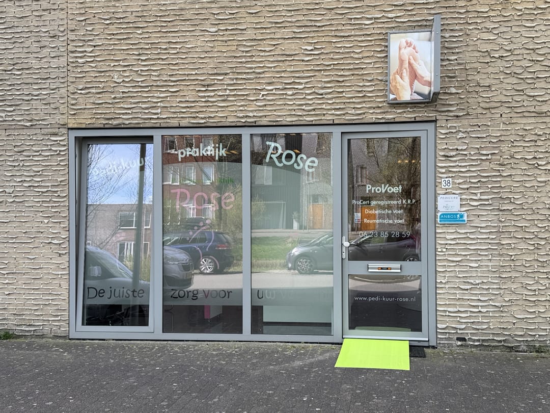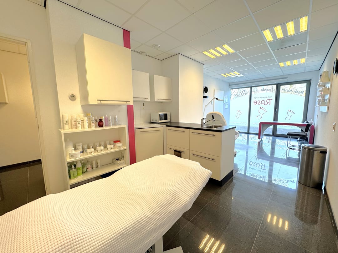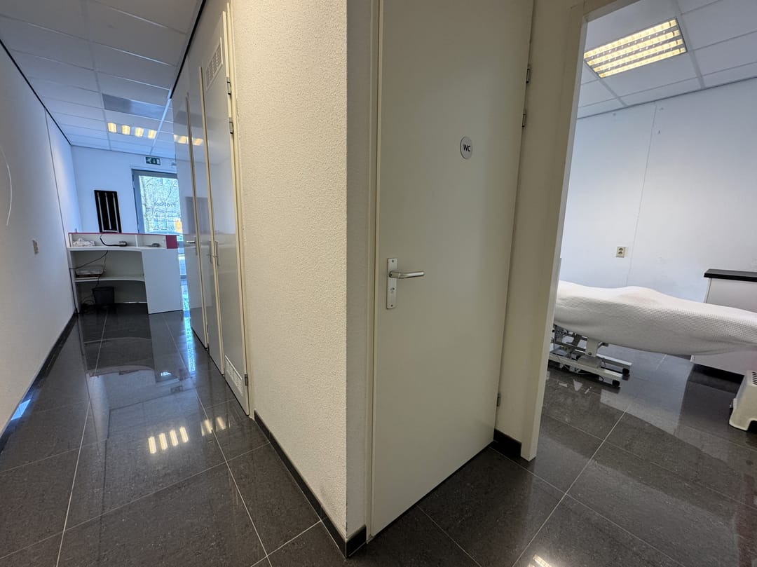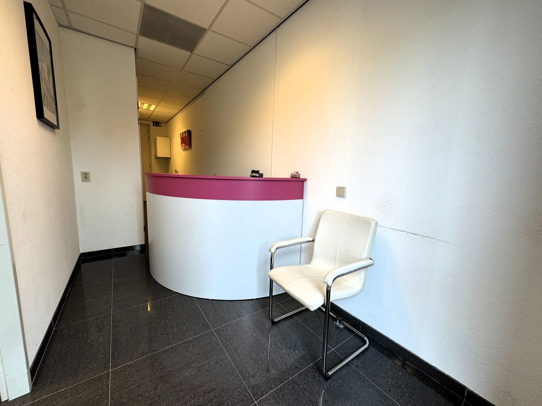 Momenteel is de ruimte ingericht voor de beauty branche met een aparte ingang die te bereiken is via de voordeur waar de balie staat om mensen te ontvangen. Via de tussendeur kom je binnen in de praktijkruimte.
