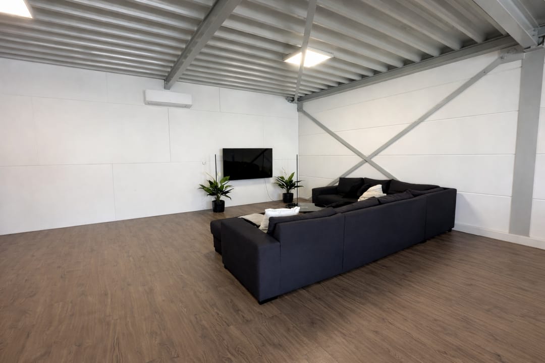 - Overheaddeuren, betonvloer, toilet, pantry, airconditioning, mechanische ventilatie en te openen ramen