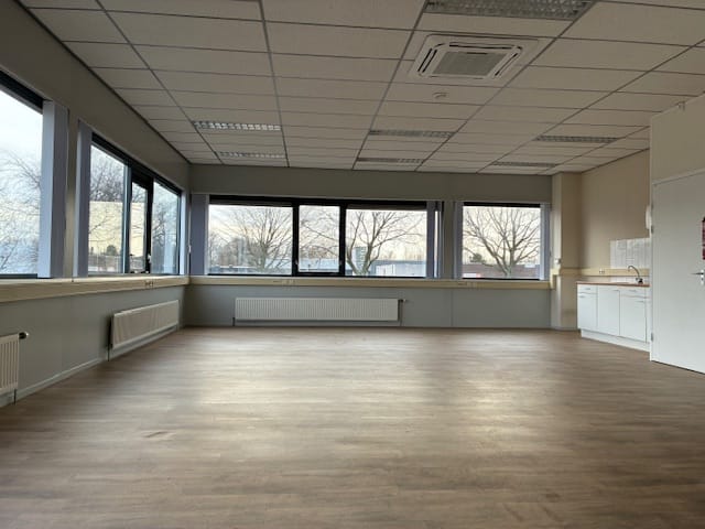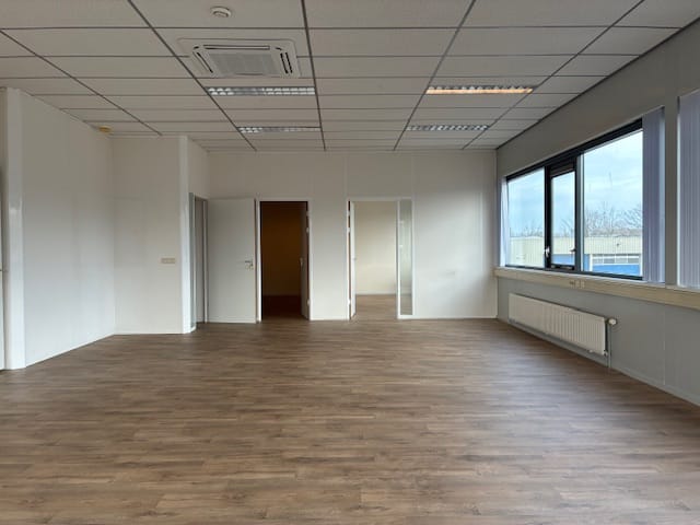 Circa 119 m² bedrijfsruimte op de begane grond en circa 100 m² kantoorruimte op de verdieping.