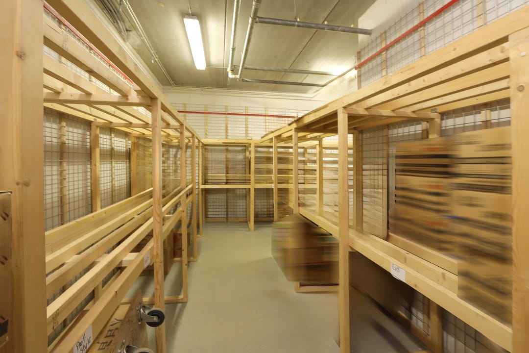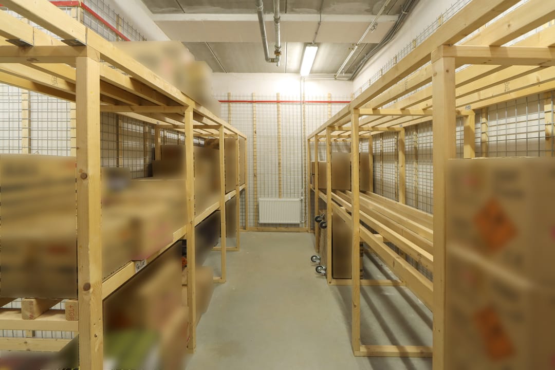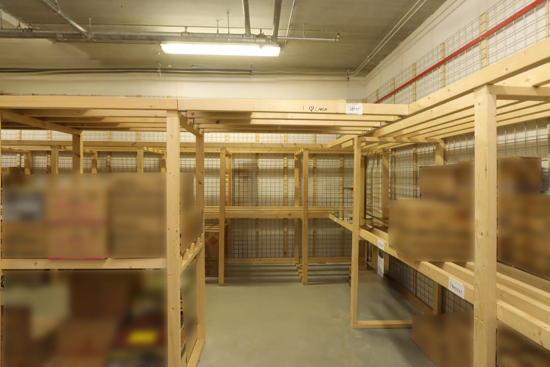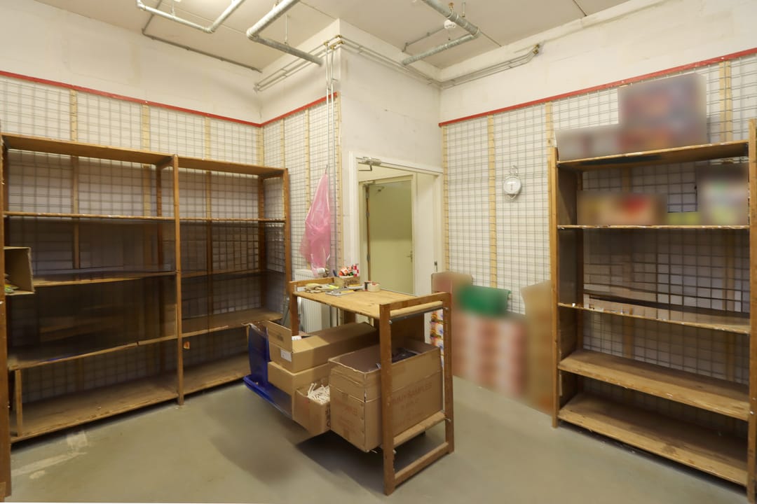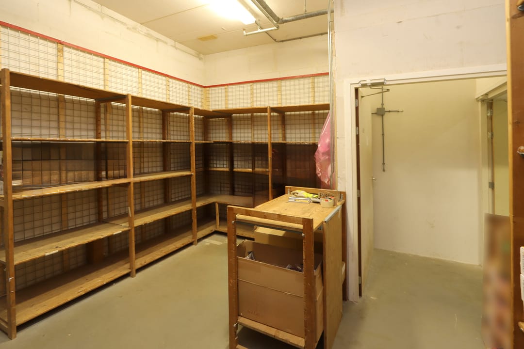Het pand is op dit moment op de begane grond ingedeeld met een aantal box-in-box ruimtes voor een specifieke opslag. Deze ruimtes zijn voorzien van een professionele, jaarlijks gekeurde sprinklerinstallatie met een grote waterpomp en een brandmeldinstallatie Honeywell Notifier NFS 2-8.