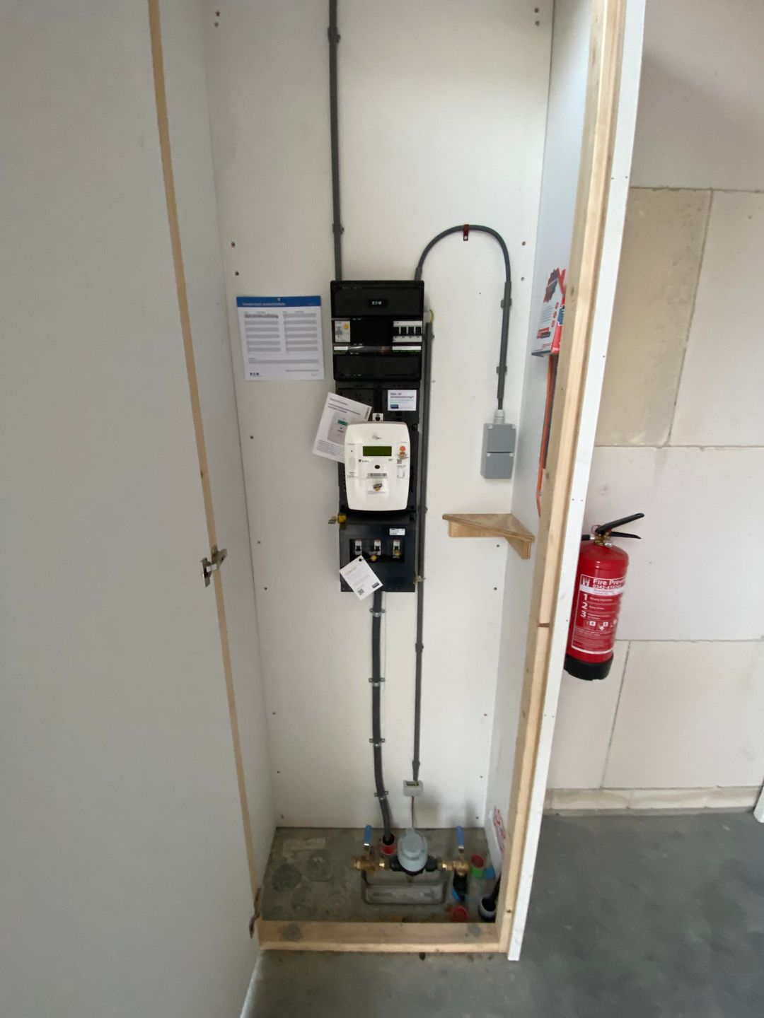 - eigen meterkast, inclusief water- en elektriciteitsmeter;