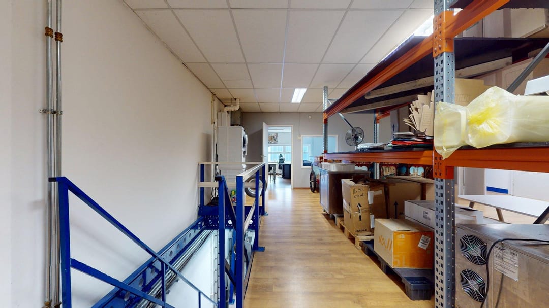Het pand van ca. 320 m² is slim ingedeeld. De begane grond is een complete productieruimte, voorzien van een afvoerput door de gehele ruimte en 10 krachtstroomaansluitingen. De ruime bovenverdieping is volledig ingericht voor kantoor en extra opslag. Dankzij een handige laaddoorsteek (vide) kunt u eenvoudig pallets naar de opslagruimte op de verdieping verplaatsen.