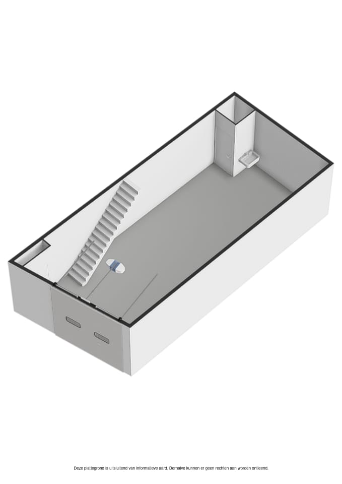 Begane grond: bedrijfsruimte van ca. 52 m², met een vrije hoogte van 3.00 meter. De vloer heeft een belastingcapaciteit van circa 1.500 kg/m². Daarnaast is de unit voorzien van een elektrische overheaddeur (3.00 hg x 3.75 br) met loopdeur, een toilet, en een eigen parkeerplaats aan de voorzijde.