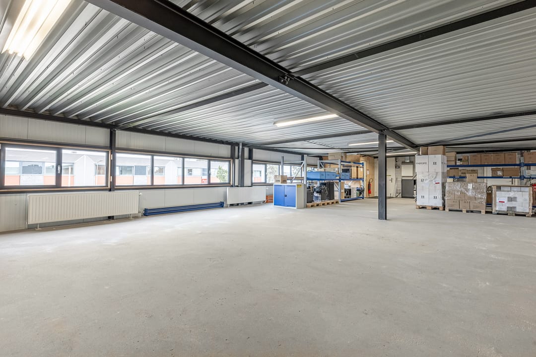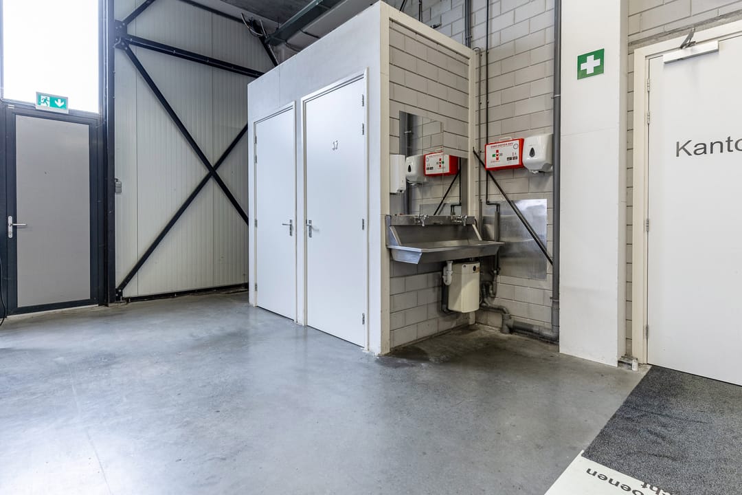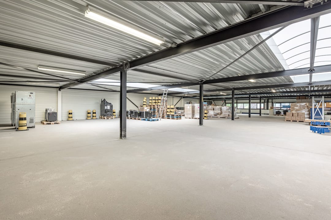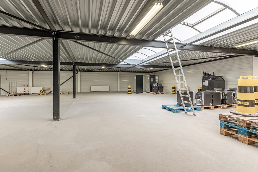 - Lichtstraten, overheaddeuren, krachtstroom, betonvloer, sprinkler, heater, toilet, pantry, mechanische ventilatie, inbouwarmaturen en te openen ramen