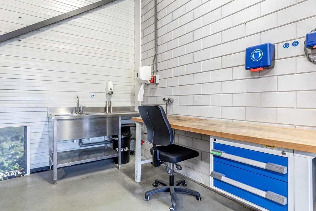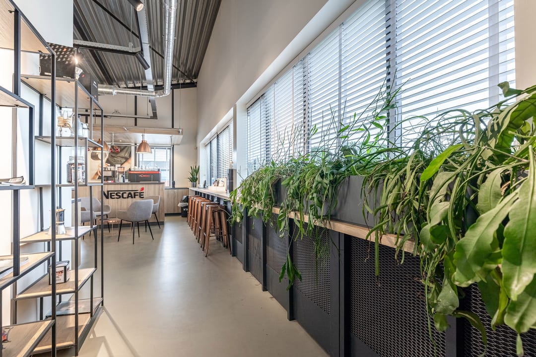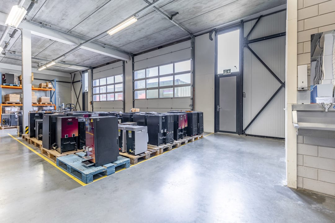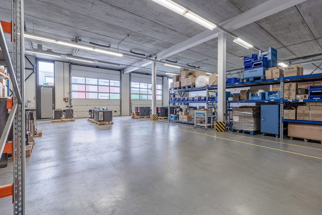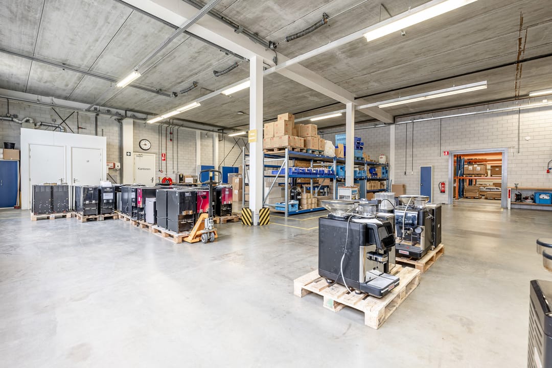 - Lichtstraten, overheaddeuren, krachtstroom, betonvloer, sprinkler, heater, toilet, pantry, mechanische ventilatie, inbouwarmaturen en te openen ramen