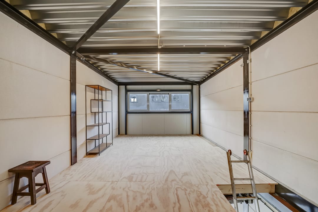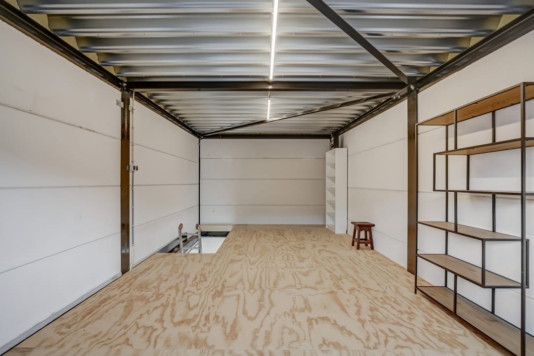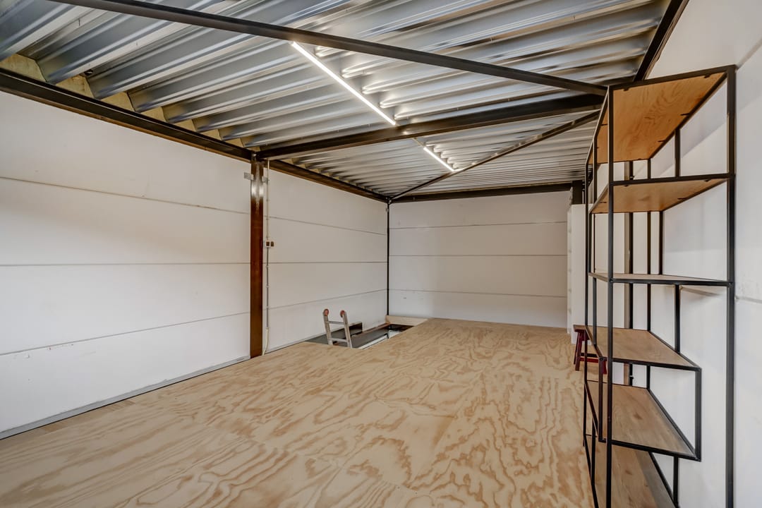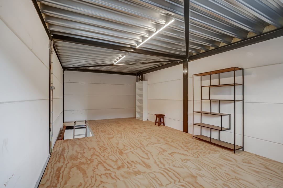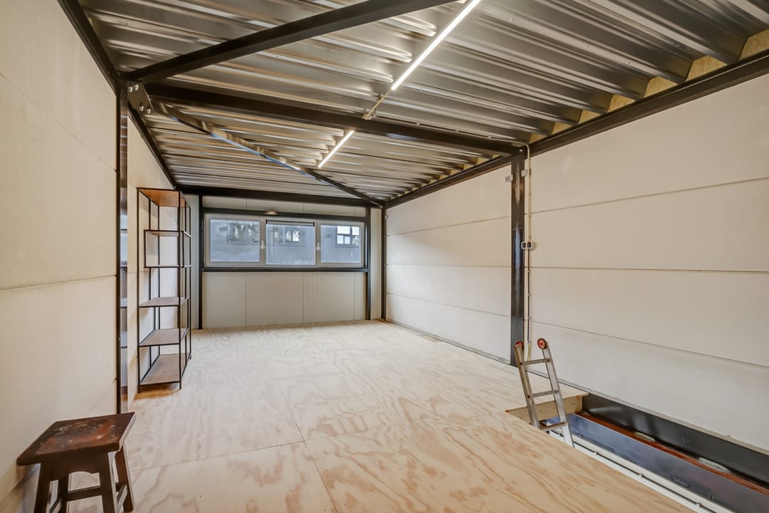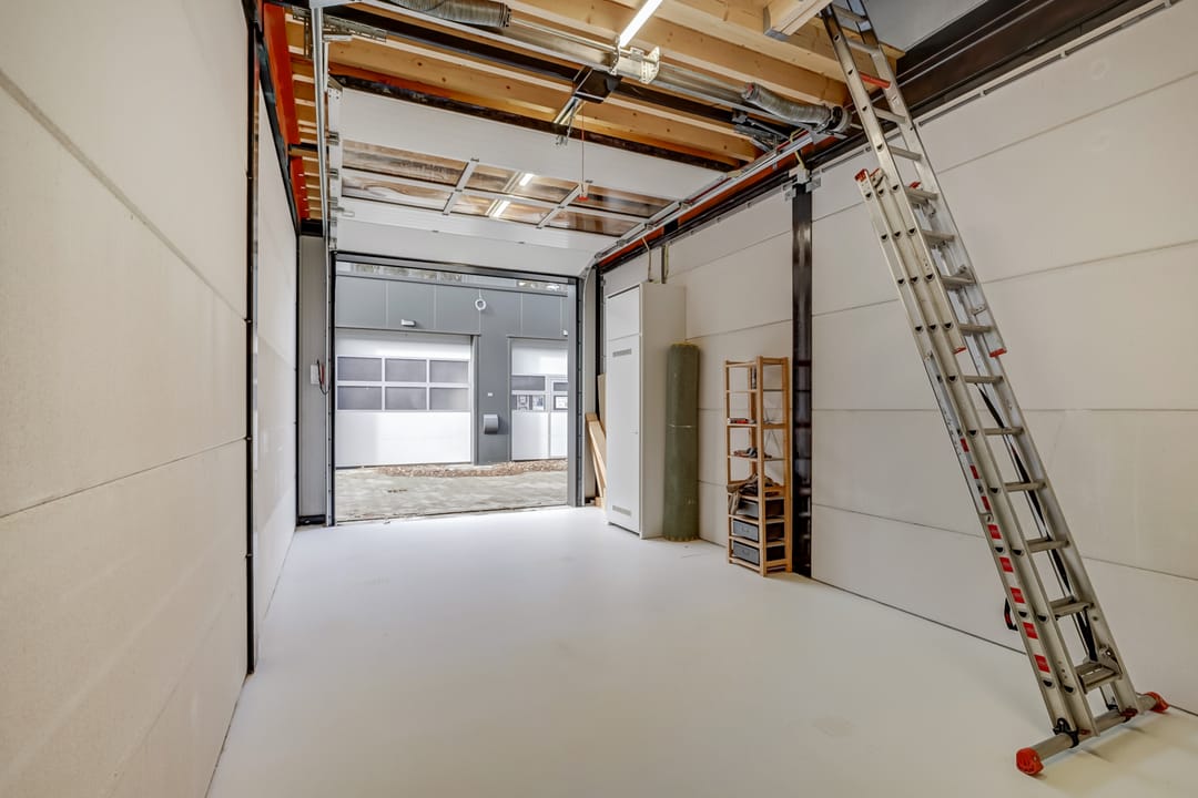 De unit heeft een totale oppervlakte van circa 64 m², verdeeld over circa 32 m² bedrijfsruimte op de begane grond en circa 32 m² kantoor-/opslagruimte op de eerste verdieping. Om de ruimte op de begane grond zo efficiënt mogelijk in te kunnen richten, is er gekozen voor een flexibel te plaatsten ladder.