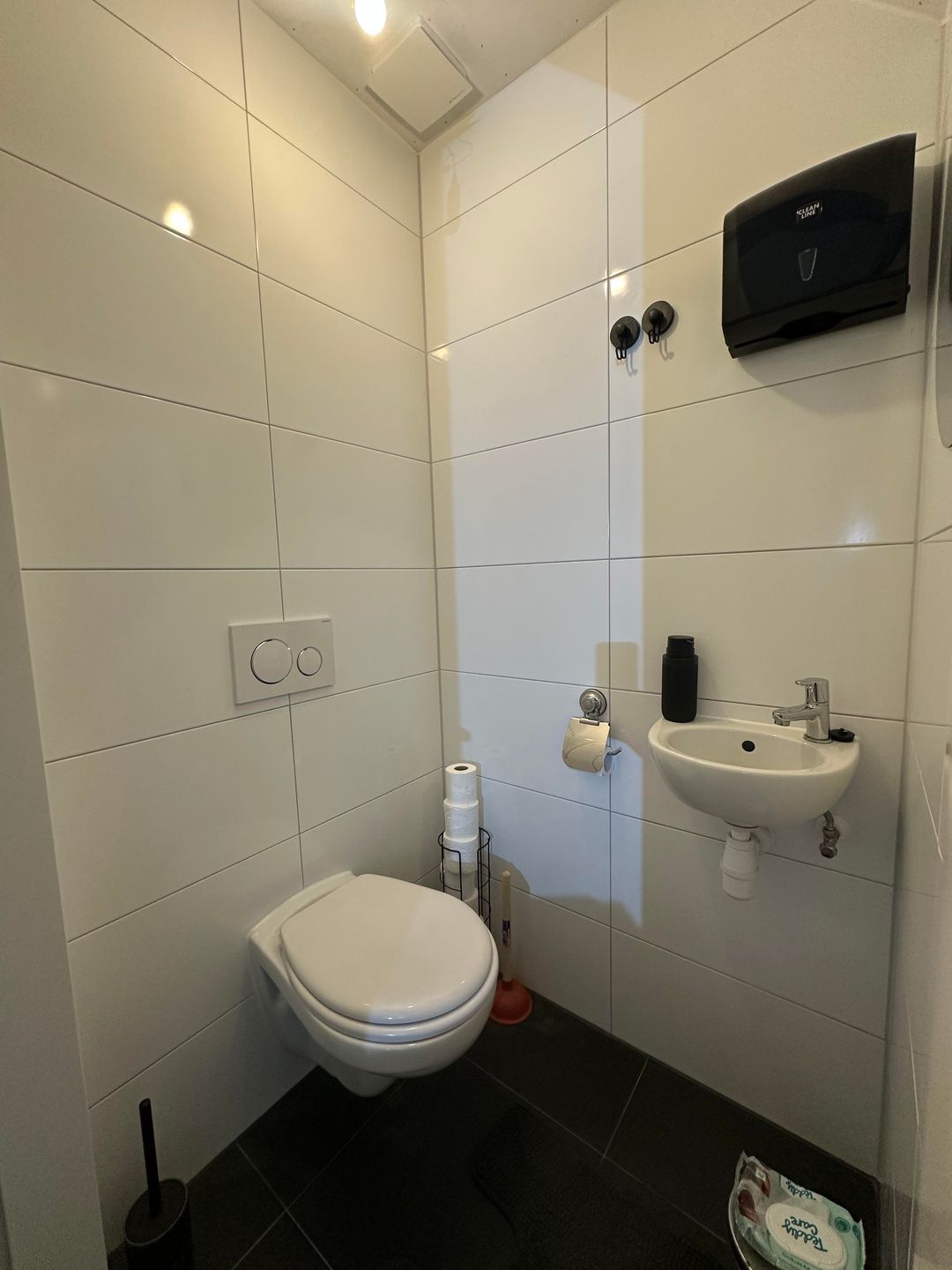 - afgewerkte toiletruimte met hangend closet en fontein..