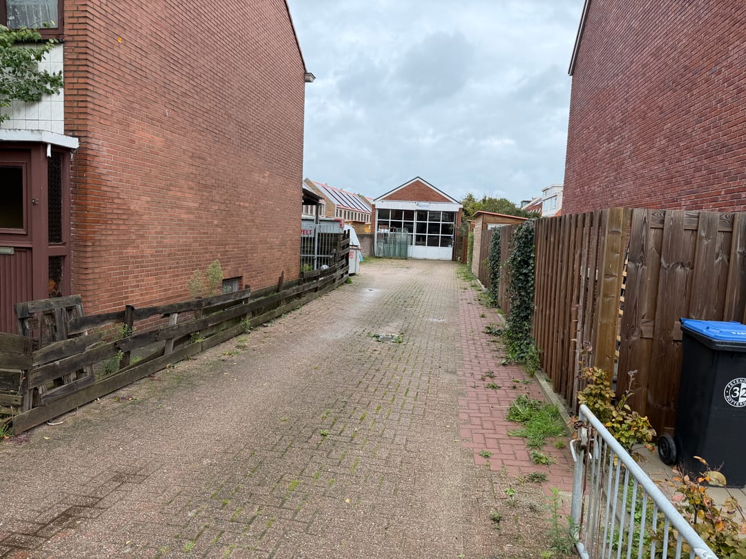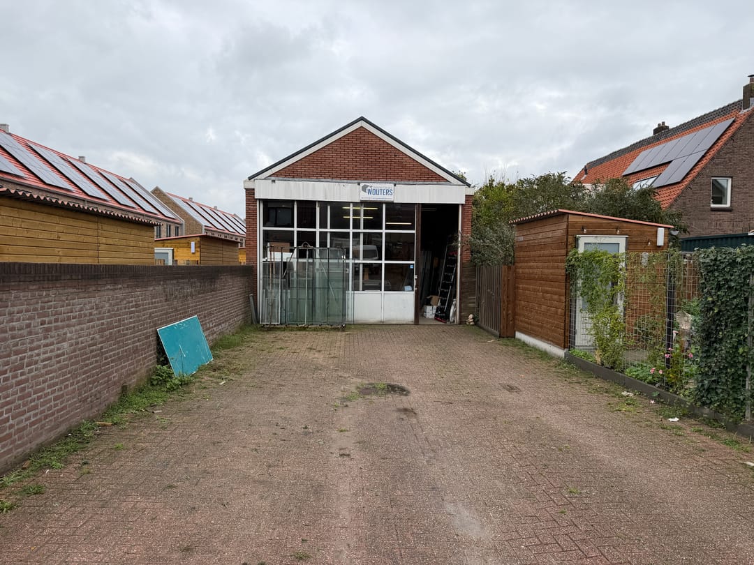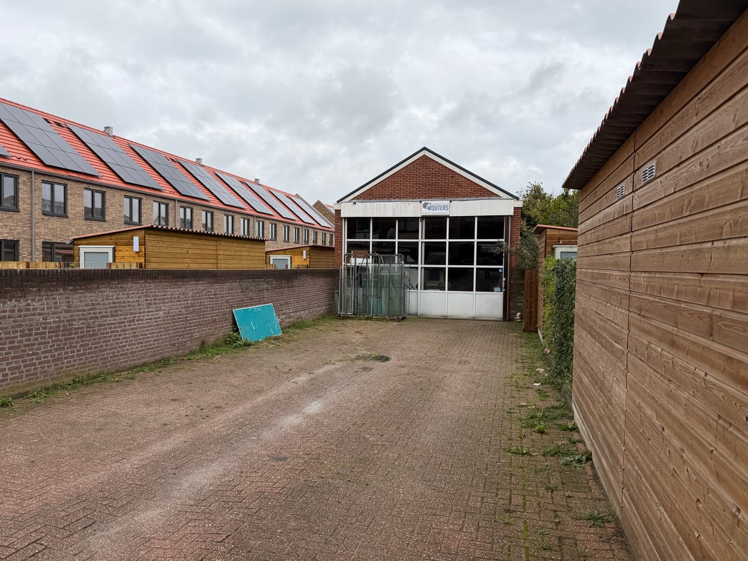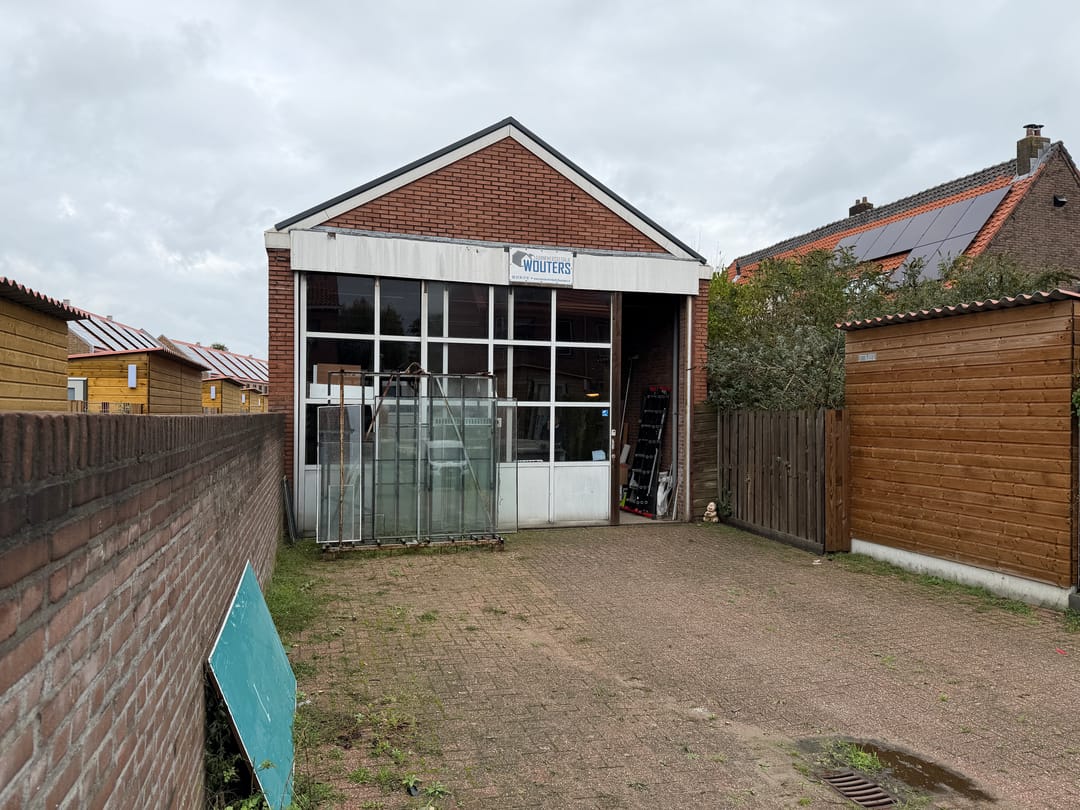 Het pand beschikt over een ruime oprit en buitenterrein, geschikt voor meerdere voertuigen of het manoeuvreren van materiaal. De voorzijde heeft grote raampartijen en een brede toegang waardoor laden en lossen eenvoudig is.