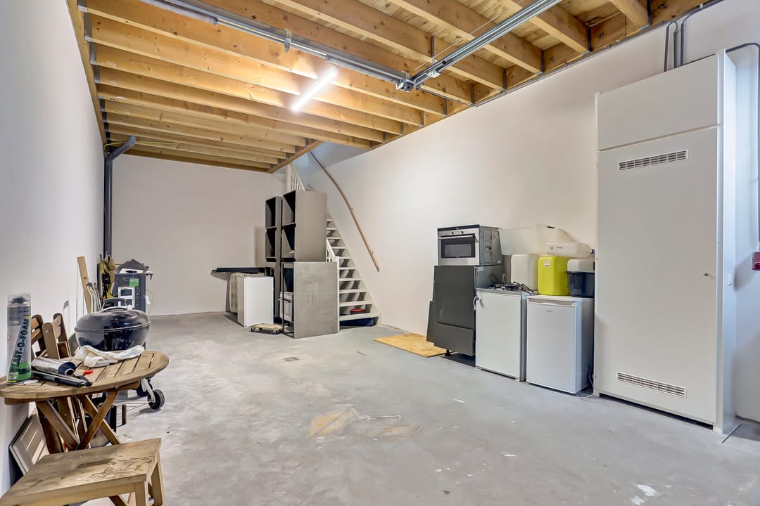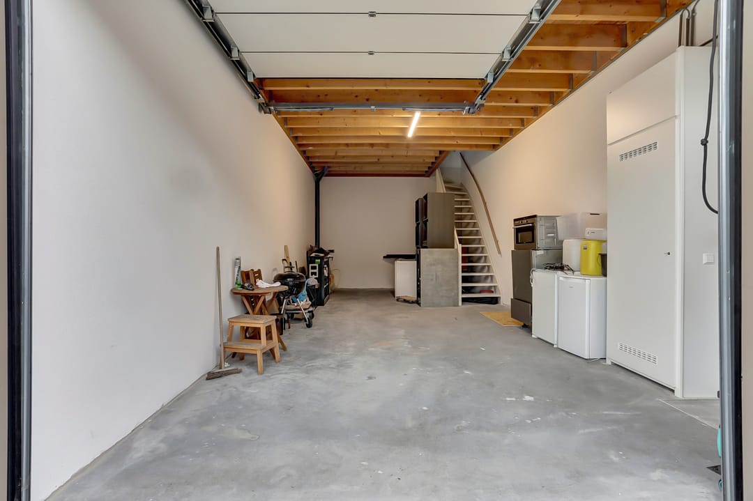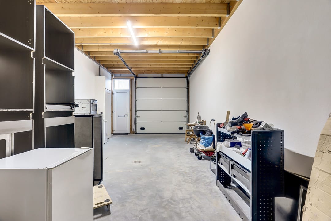 - Overheaddeuren, krachtstroom, betonvloer, toilet, pantry, inbouwarmaturen en te openen ramen