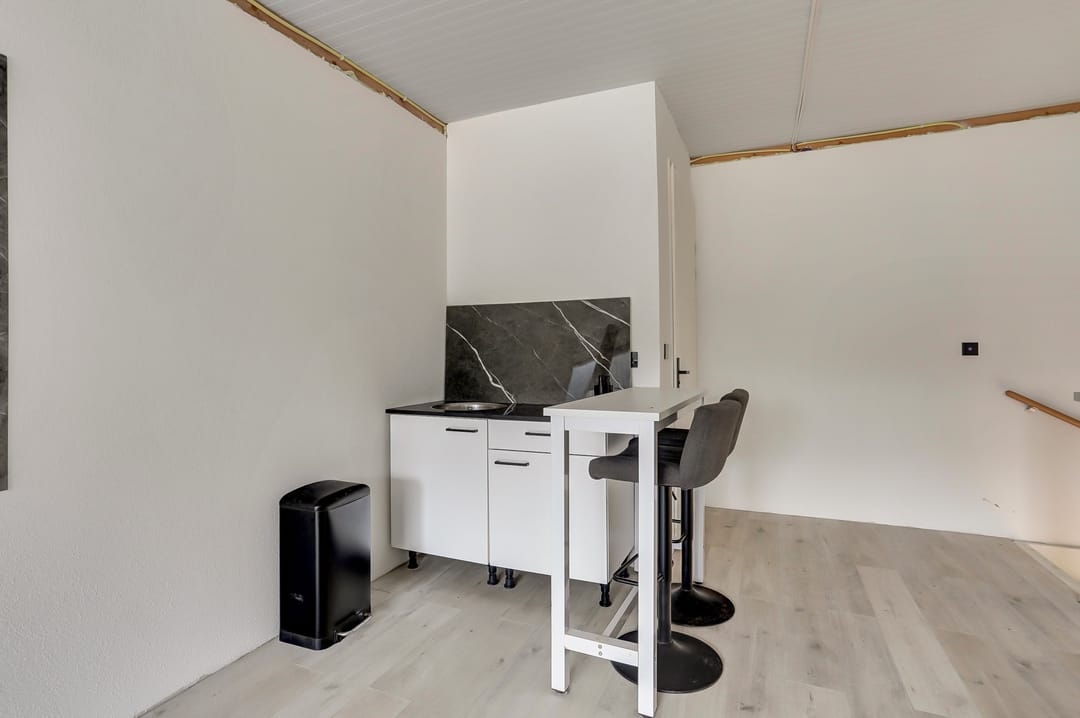 Verkocht wordt volgens het ‘as is-where is’ principe. Het huidige opleveringsniveau en de installaties zullen dan ook door verkoper om niet achtergelaten worden in het verkochte. Dit houdt in dat de overeen te komen koopsom inclusief het inbouwpakket en de installaties is, en dat koper geen rechten kan ontlenen aan de werkbaarheid van het inbouwpakket en de installaties.