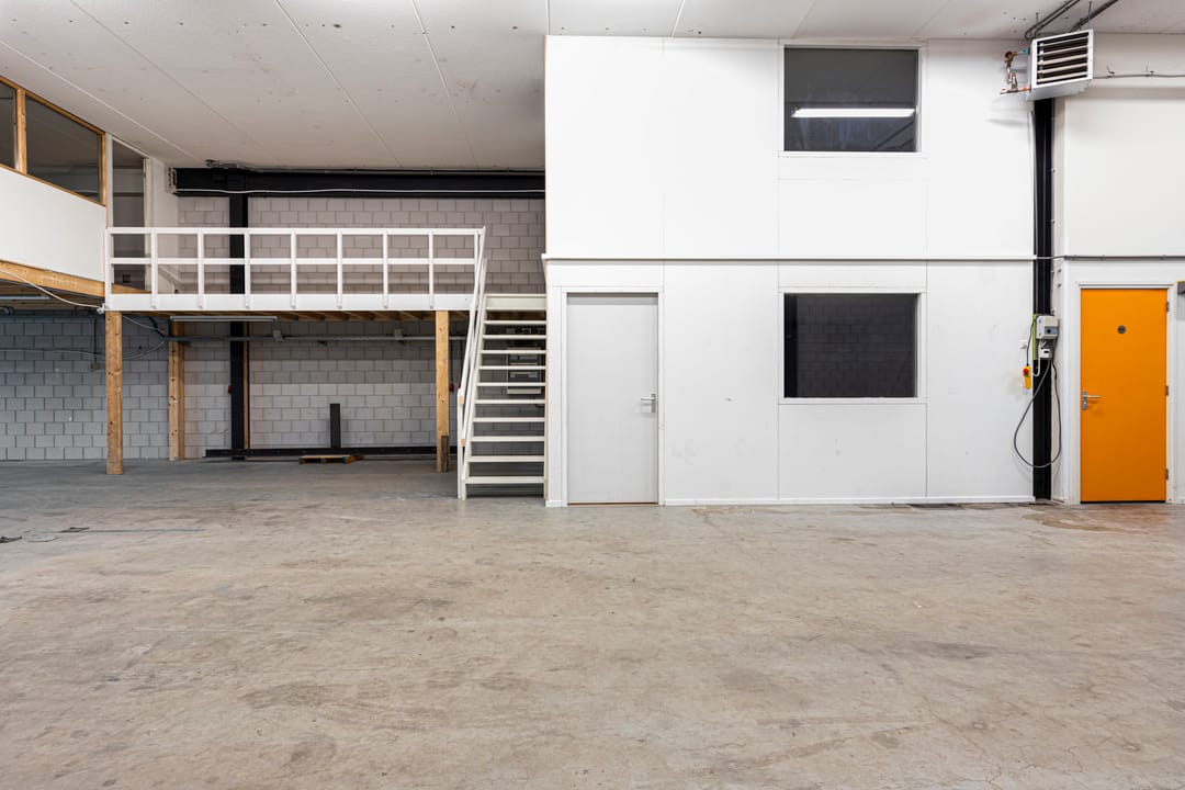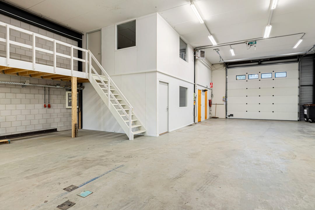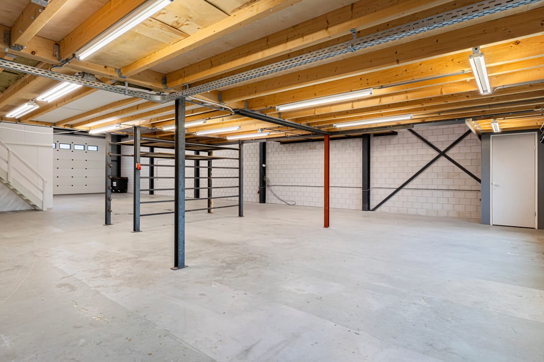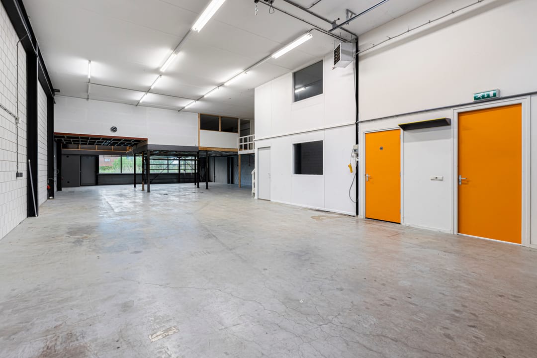 - Lichtstraten, overheaddeuren, krachtstroom, betonvloer, toilet, pantry, airconditioning, mechanische ventilatie, inbouwarmaturen en te openen ramen