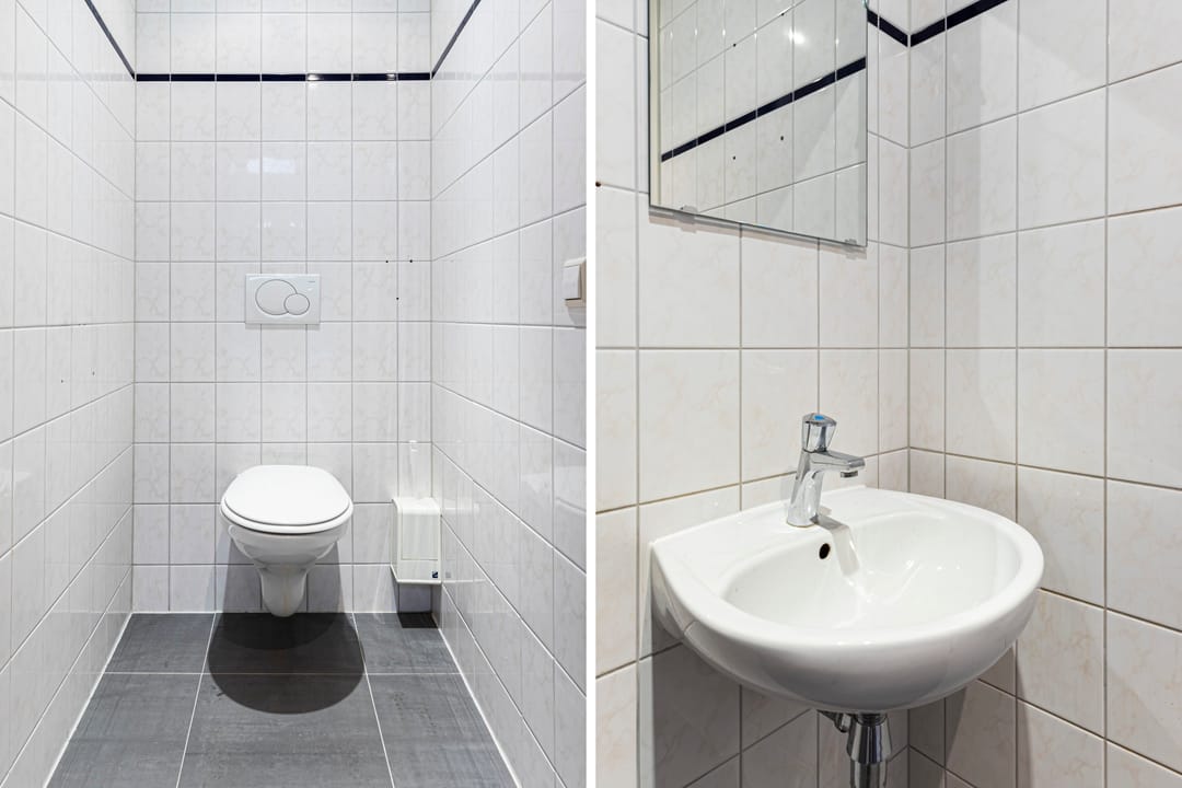 - betegelde toiletgroep D/H inclusief fontein.