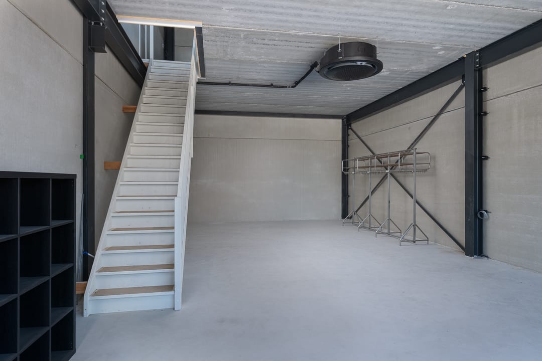 - Airconditioning, overheaddeuren, krachtstroom, betonvloer, toilet en te openen ramen