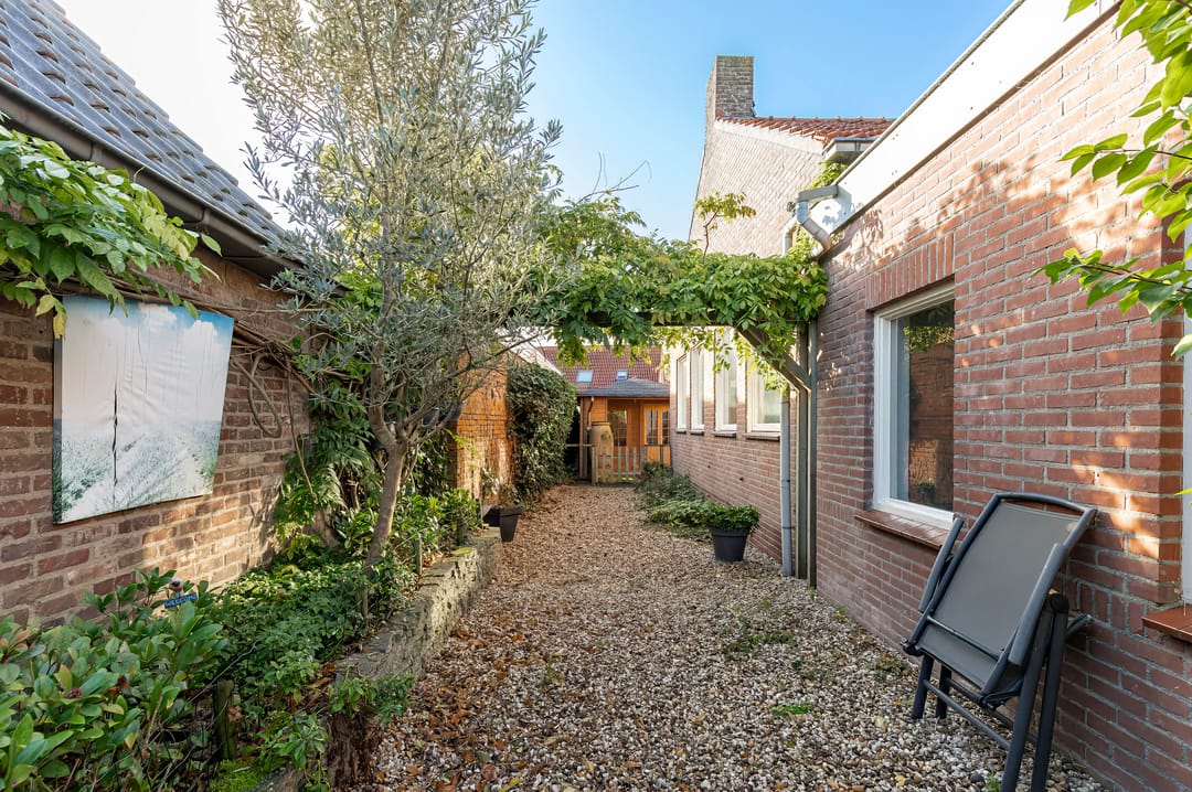 Buiten geniet u van volop comfort: grenzend aan de kleine hal is een veranda van circa 23 m² gebouwd, waar u heerlijk beschut kunt zitten met zicht op de achtertuin. De tuin zelf is voorzien van een houten schuur circa 7 m² met een praktische overkapping van circa 7m², ideaal voor het droog stallen van fietsen of als koele plek tijdens warme dagen.