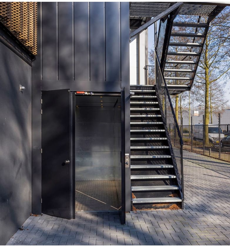 - Ruime goederenlift (draagkracht 2000kg) 1,5 m (b) x 2 m (d) x 3 m (hg)