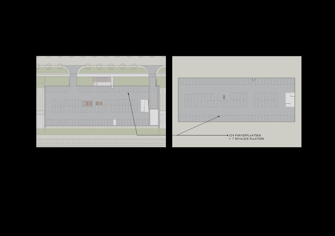 In de ondergrondse garage liggen 231 parkeerplaatsen.