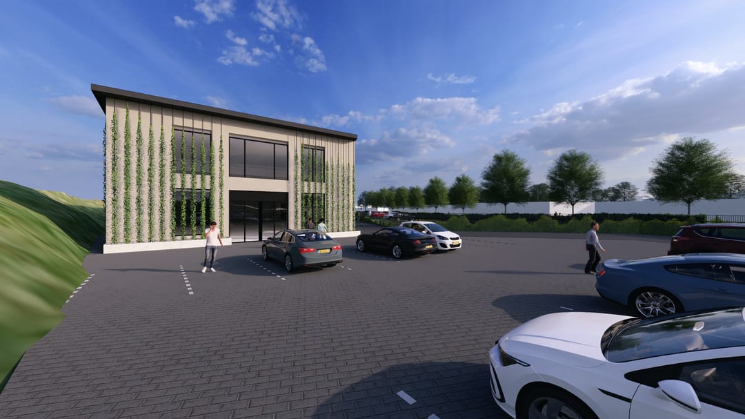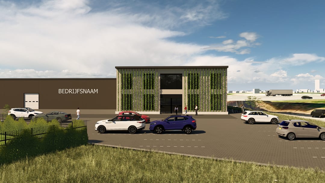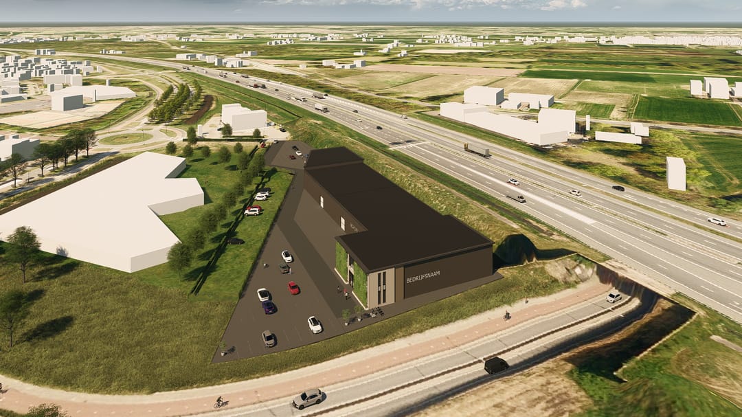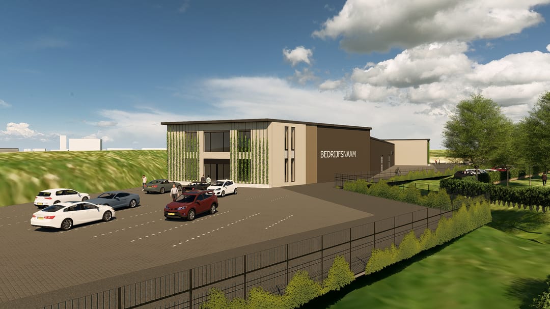 Het gebouw bestaat uit 2 volledige (hoge) bouwlagen met een penthouse verdieping welk qua ontwerp deels in de geluidswal wordt opgenomen. Het schetsontwerp kan op verzoek nog worden aangepast aan de specificaties van de gebruiker. Dat maakt het uniek. Meestal is dit al bepaald. Uiteraard wordt het duurzaam en volgens de huidige bouweisen gerealiseerd door een gerenommeerde aannemer.
