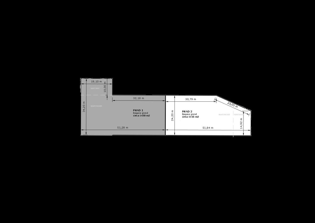 (het gebouw kan gekoppeld worden. Maten op basis van b.v.o.)