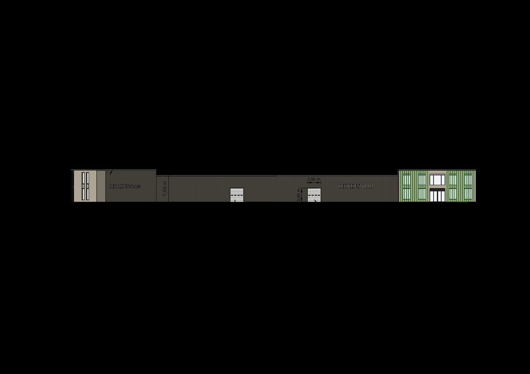 - Vrije hoogte 6,70-8,20 meter hoogte op begane grond