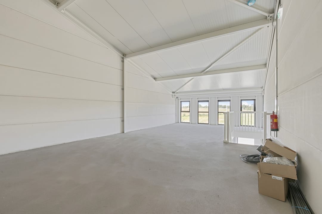 Dit object is gebouwd met een volledige verdiepingsvloer en heeft een totale vloeroppervlakte van 140 m² b.v.o. evenredig verdeeld over de begane grond en de eerste verdieping. De begane grond is uitgevoerd met een praktische overheaddeur. De verdieping met een betonnen vloer is qua oppervlakte gelijk aan de begane grond en ideaal voor een nader te ontwerpen kantoor.