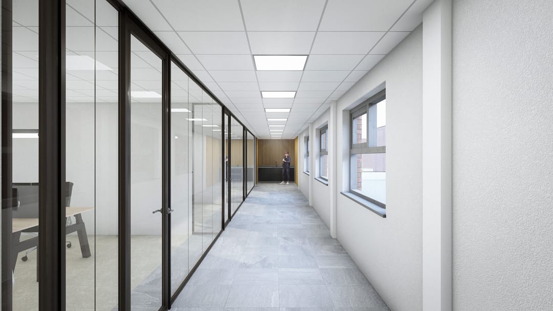 De kantoor- bedrijfsruimte wordt opgeleverd in gerenoveerde casco staat met de volgende voorzieningen: