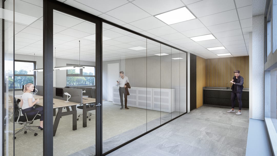 Voor de verhuur is totaal circa 520 m² v.v.o. kantoor- bedrijfsruimte beschikbaar, verdeeld als volgt: